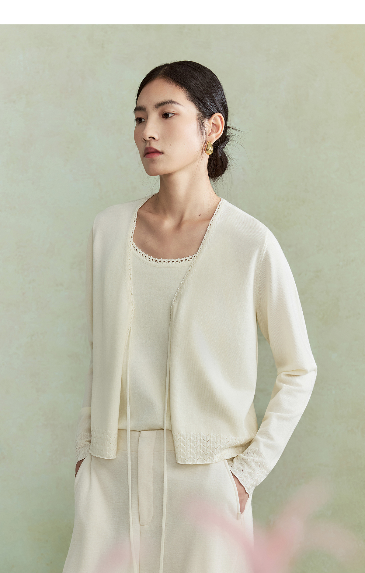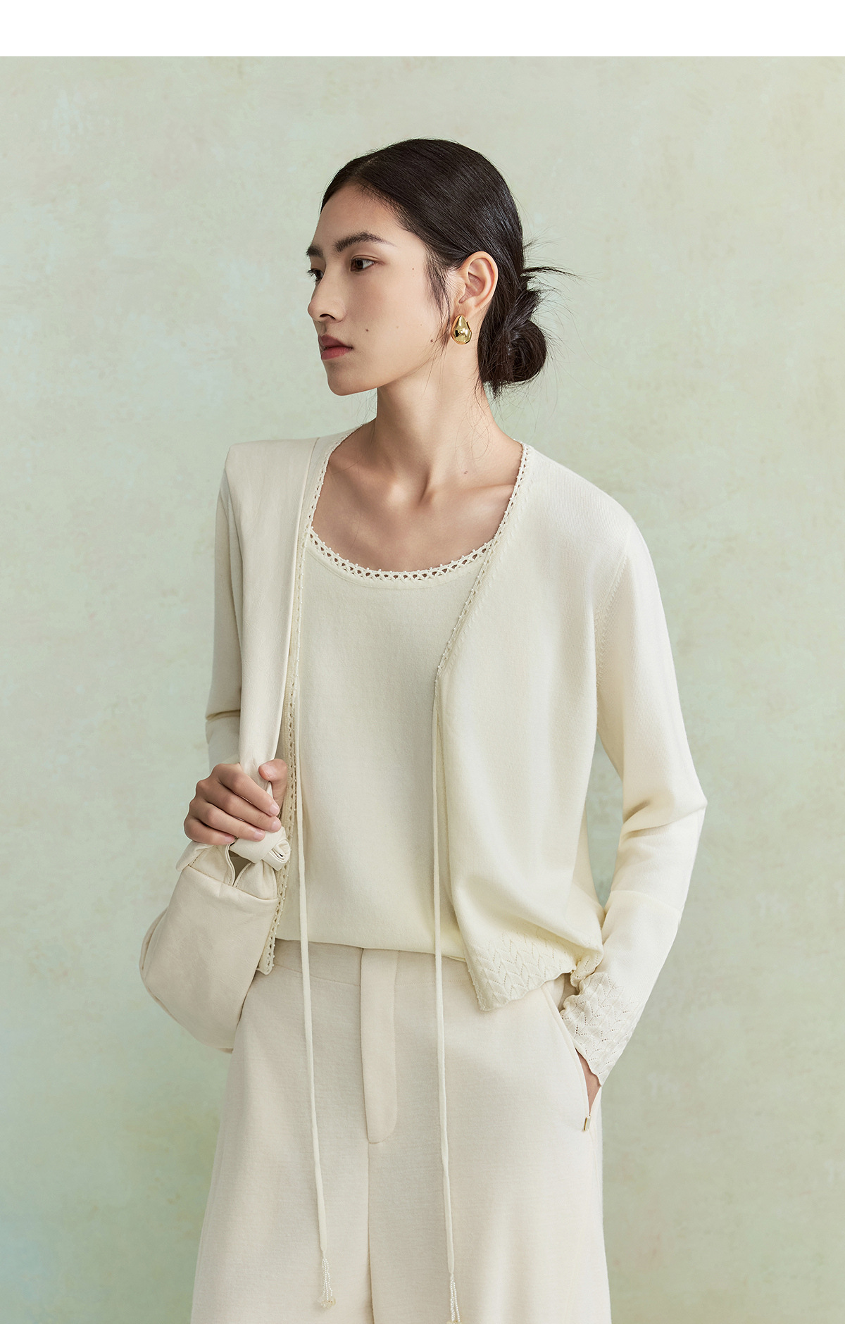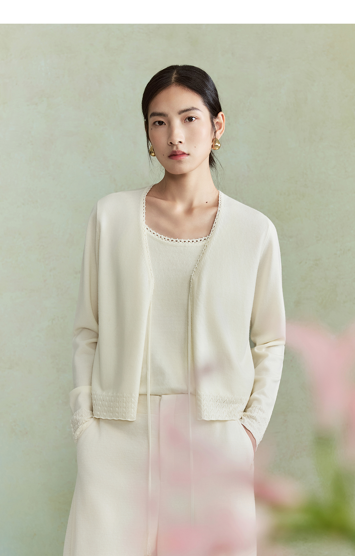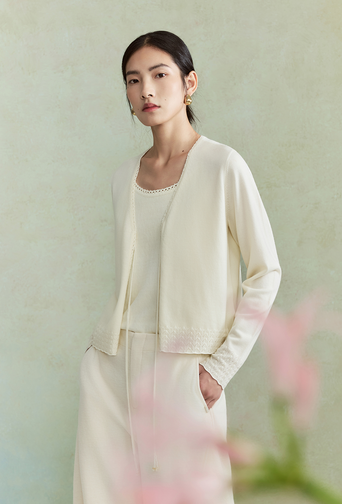 【林栖设计小店】(现货)澳毛外套镂空手钩花边钉珠轻中式2026早春新款毛织上衣女1961048