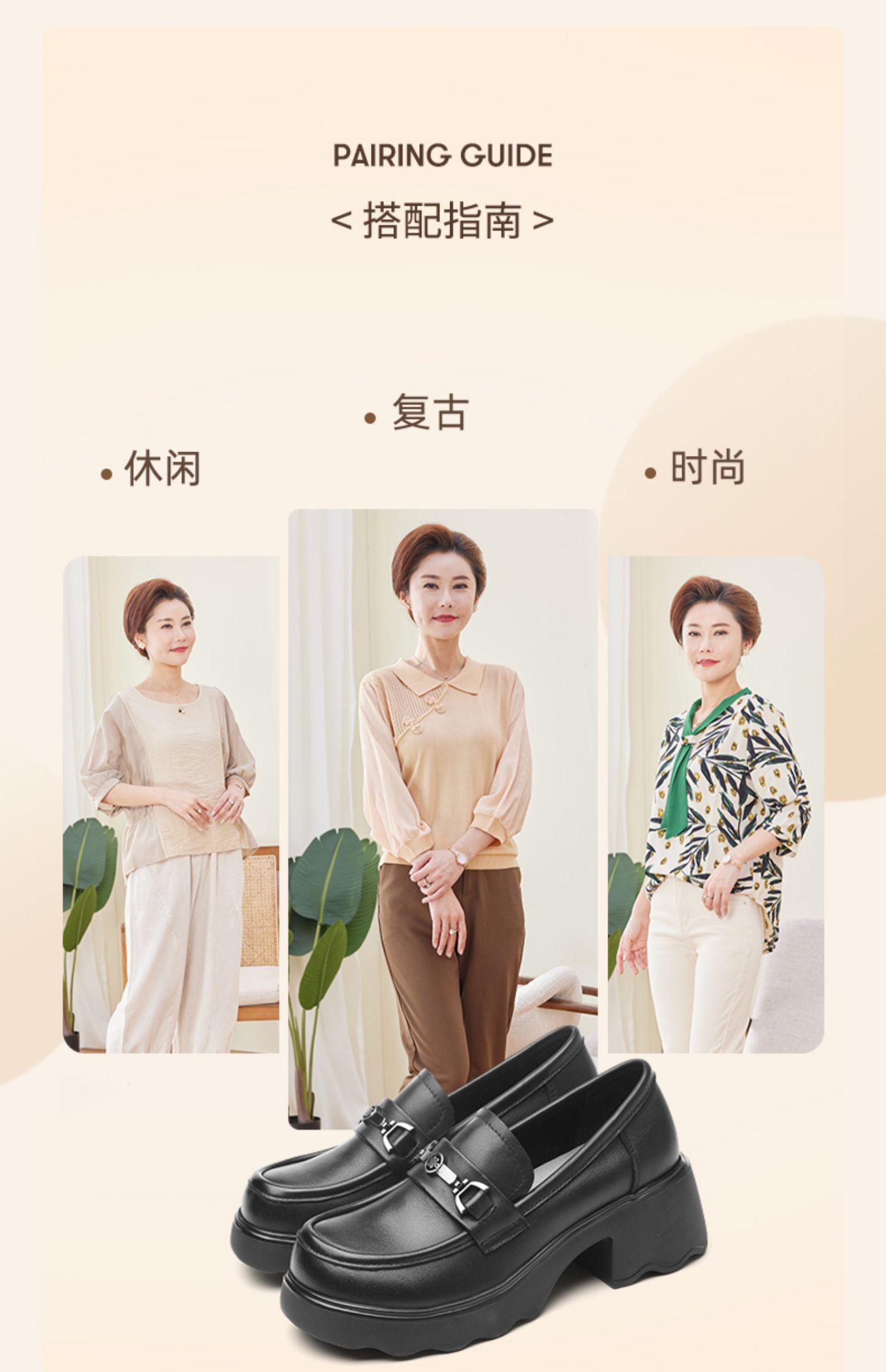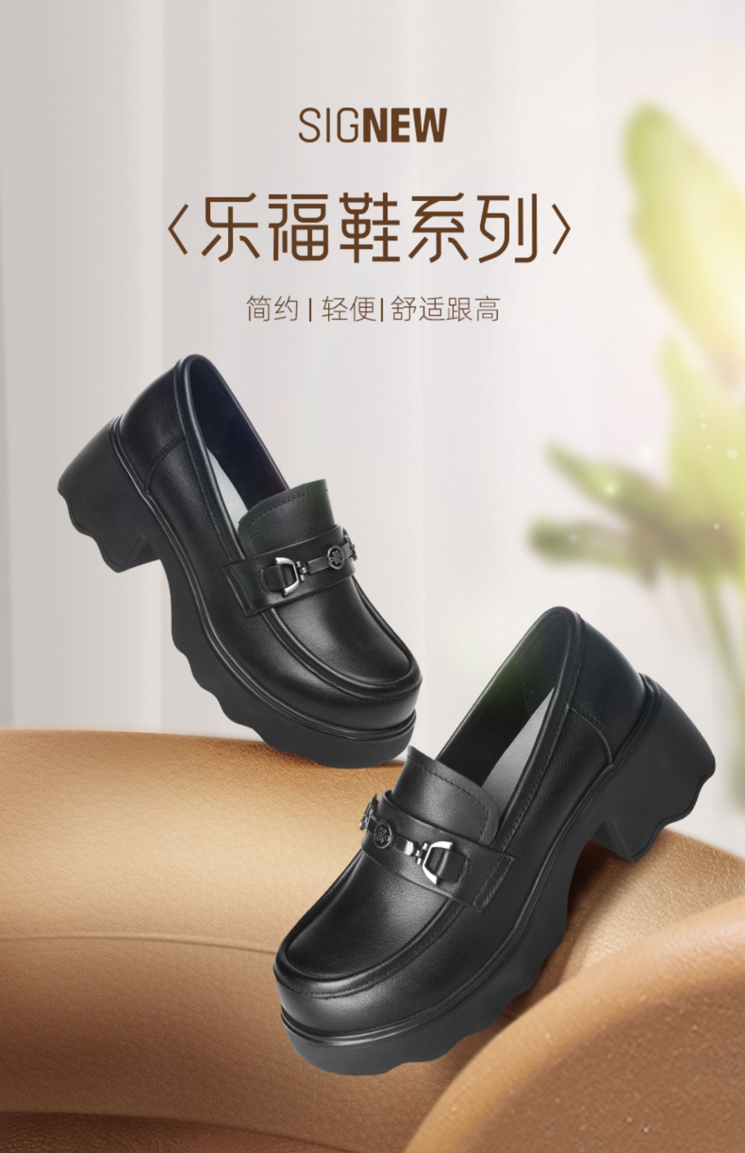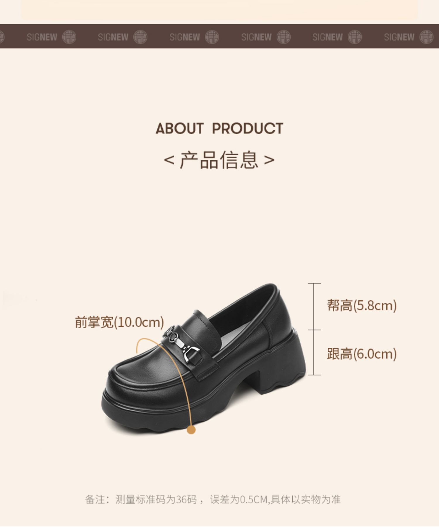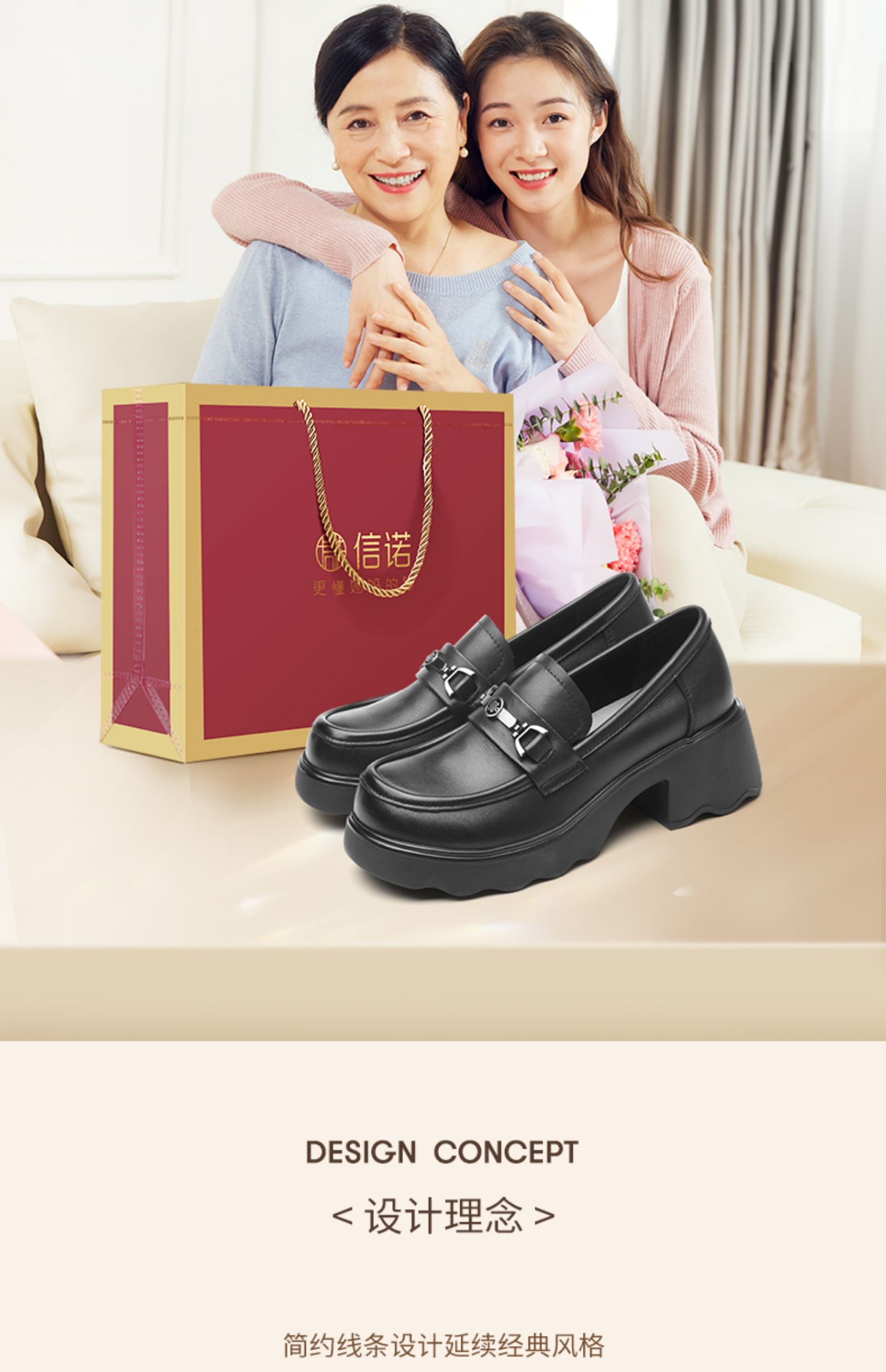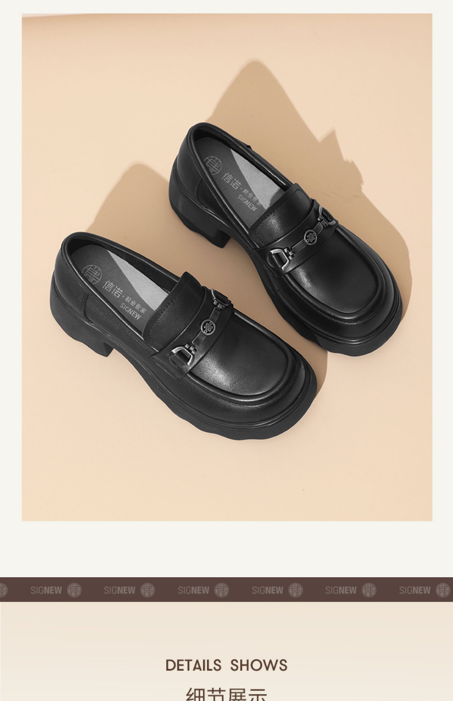 信诺真皮舒适女鞋2025新款春季厚底小皮鞋乐福鞋高跟中年妈妈鞋子X5C037-26