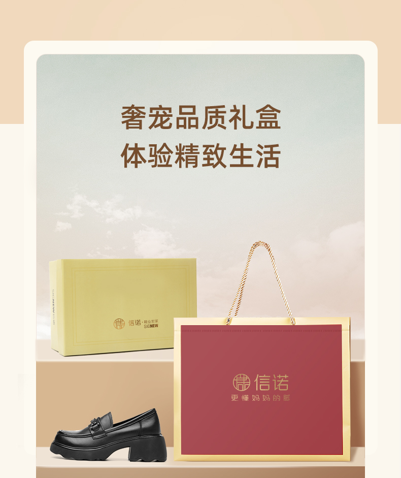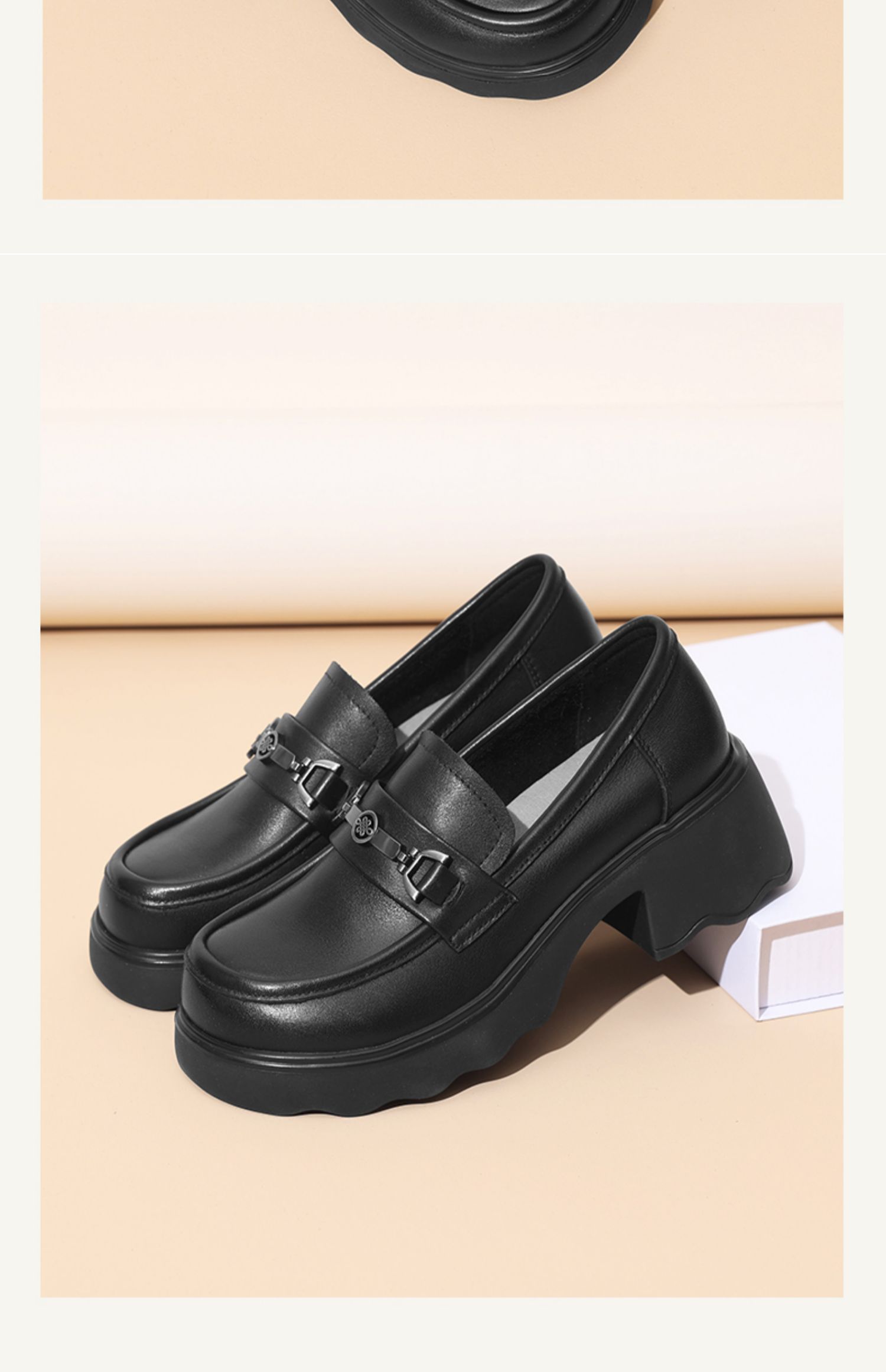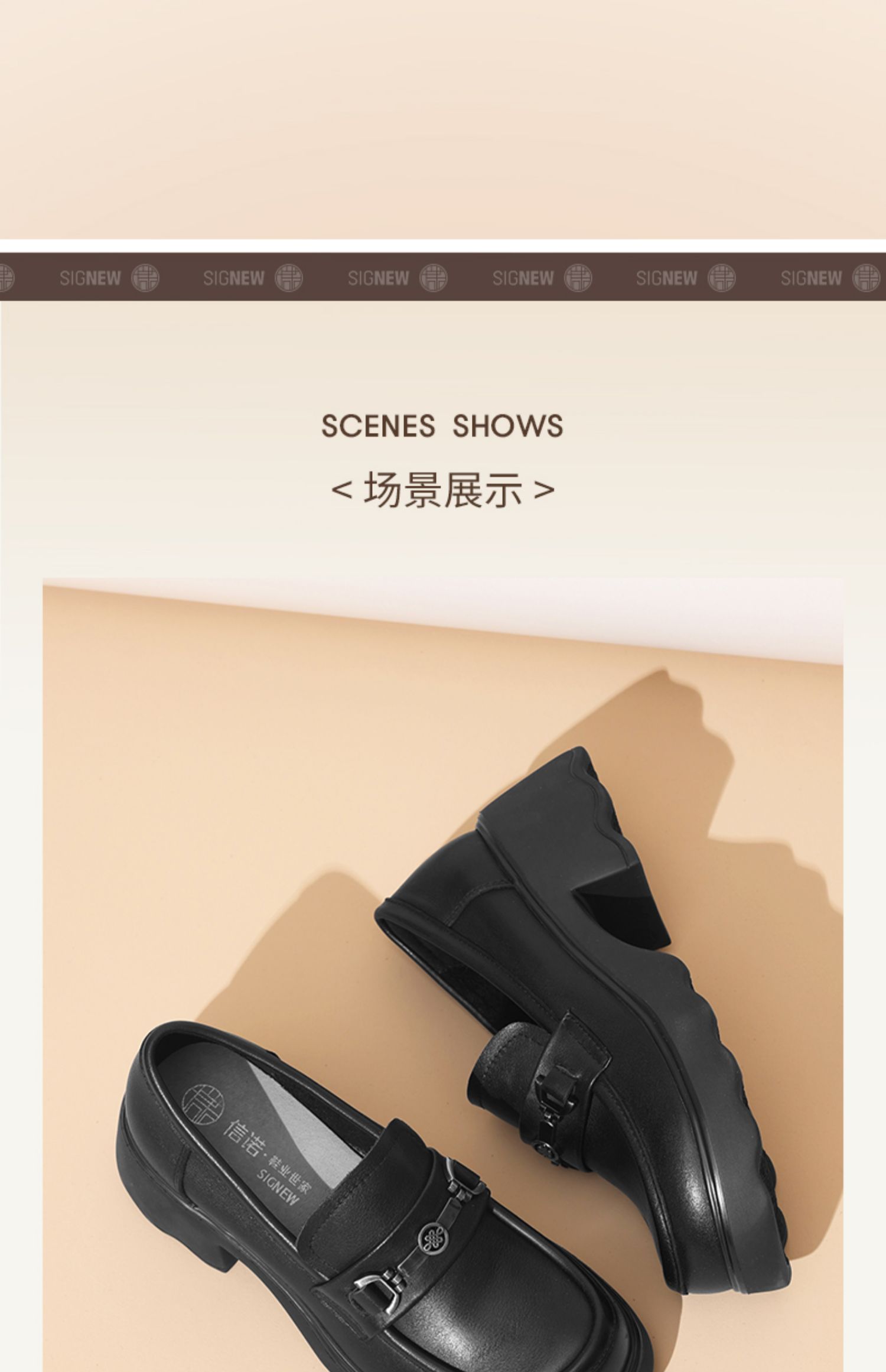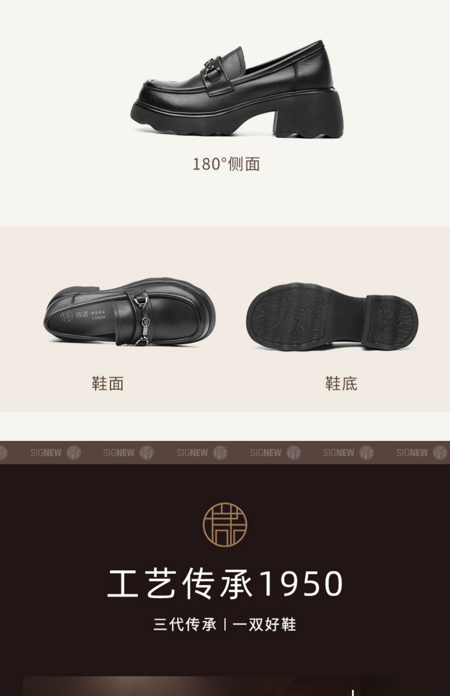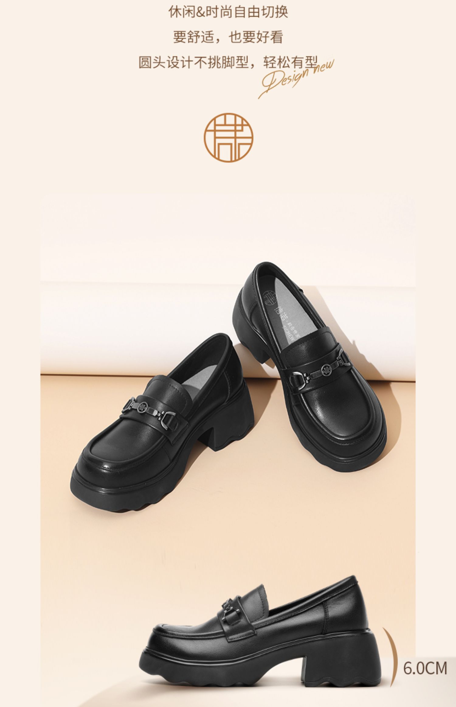 信诺真皮舒适女鞋2025新款春季厚底小皮鞋乐福鞋高跟中年妈妈鞋子X5C037-26