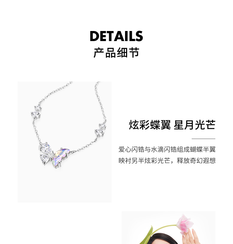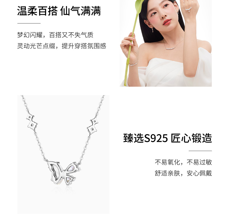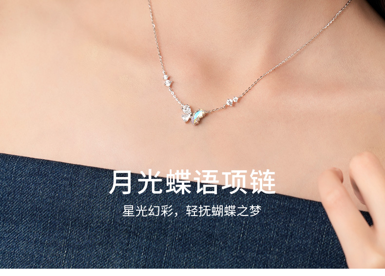 KADER卡蒂罗月光蝶语项链女S925银纯银轻奢小众设计简约生日礼物送女友送闺蜜