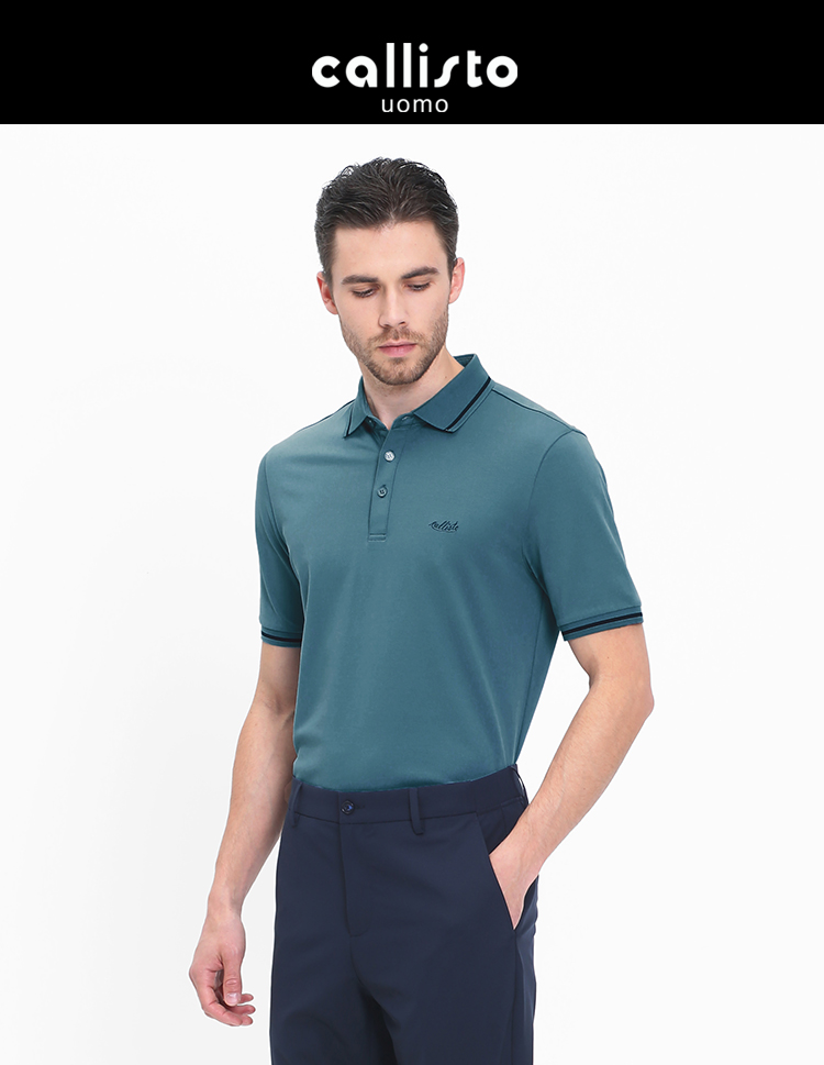callisto湖蓝绿天丝翻领T恤 SRTSS066C