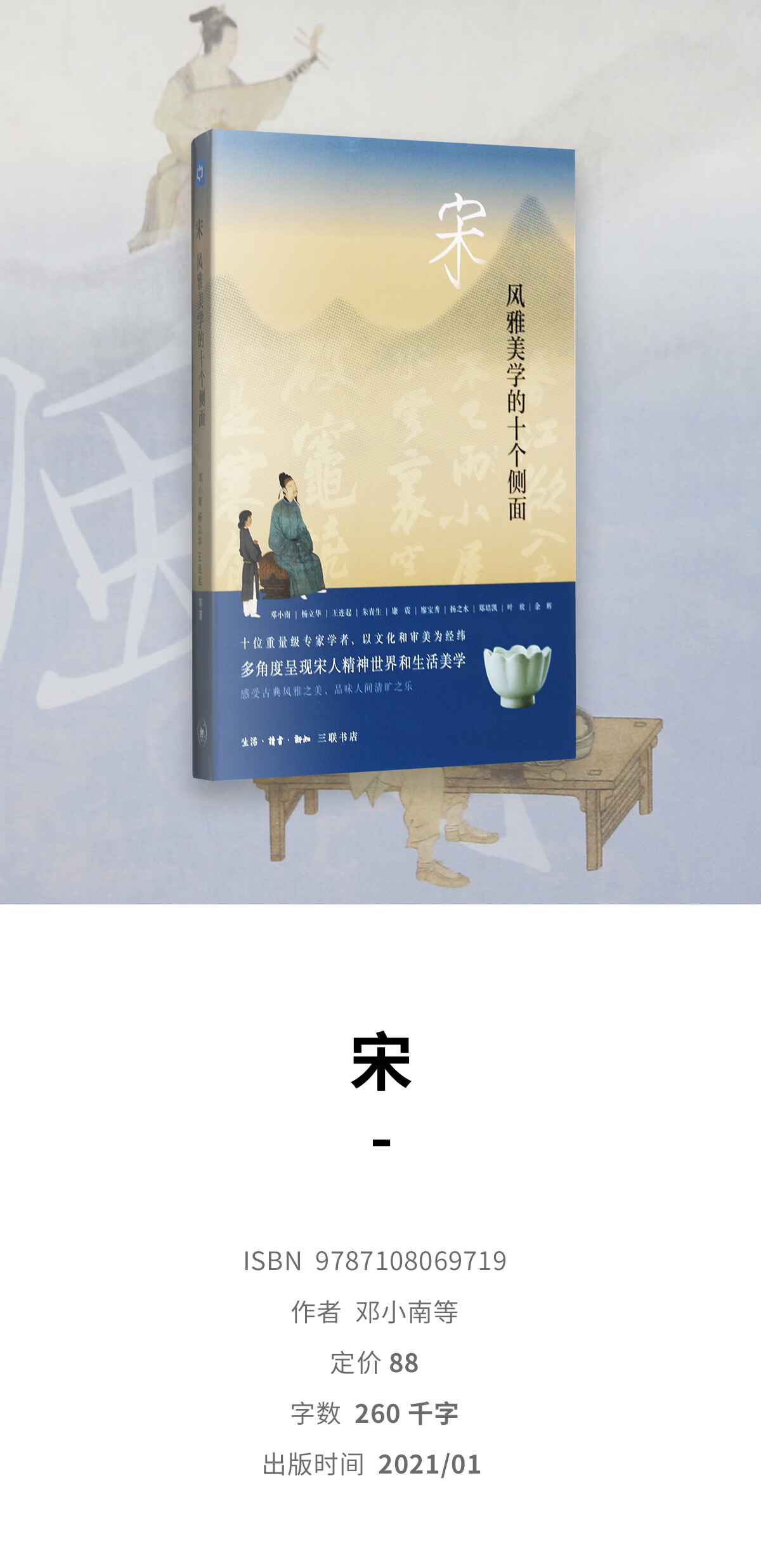 邓小南、杨立华、王连起、朱青生、康震、廖宝秀、扬之水、邓培凯、叶放、余辉十位重量级专家学者,以文化和审美为经纬,分别从国势、理学、书法、宋画、宋词、宋瓷、名物、茶事、雅集十个侧面,编织宋代文人的生活美学指南,立体呈现宋人细腻丰富的精神世界。