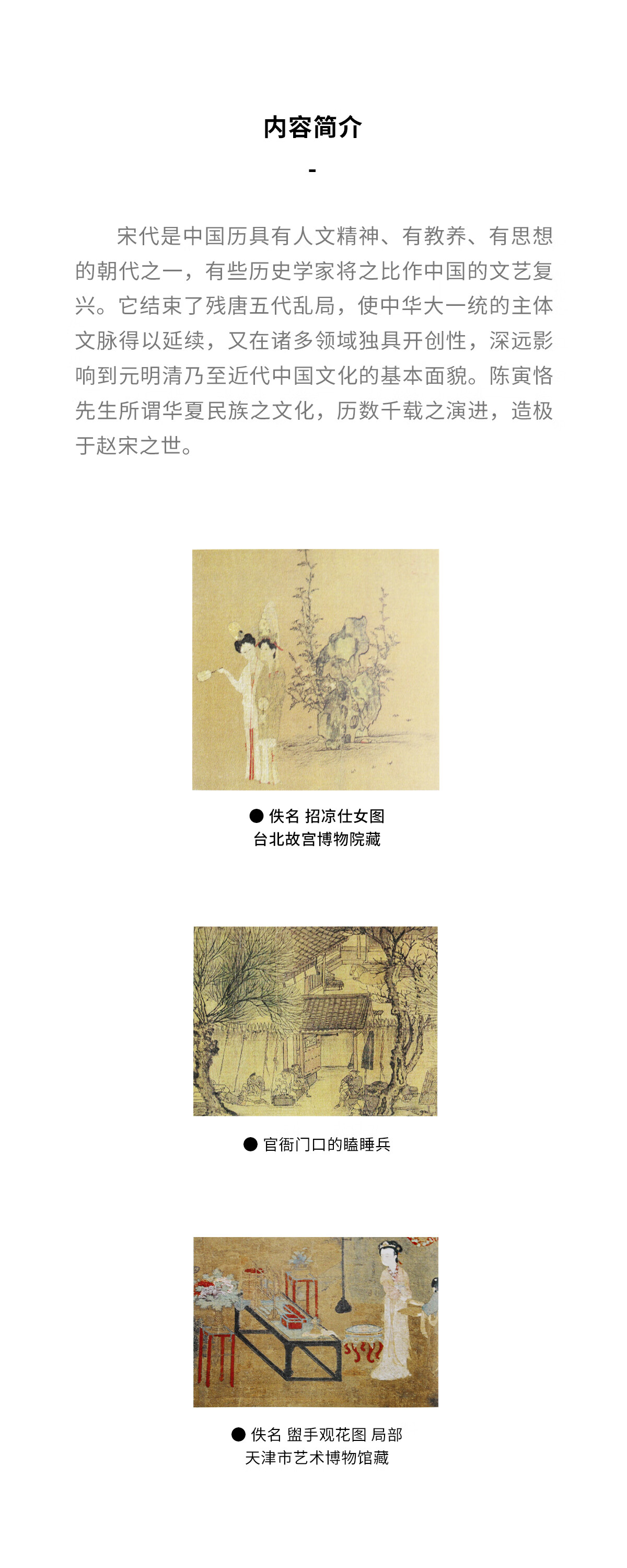 宋代是中国历史上最具有人文精神、最有教养、最有思想的朝代之一,有些历史学家将之比作中国的文艺复兴。它结束了残唐五代乱局,使中华大一统的主体文脉得以延续,又在诸多领域独具开创性,深远影响到元明清乃至近代中国文化的基本面貌。陈寅恪先生所谓“华夏民族之文化,历数千载之演进,造极于赵宋之世”。