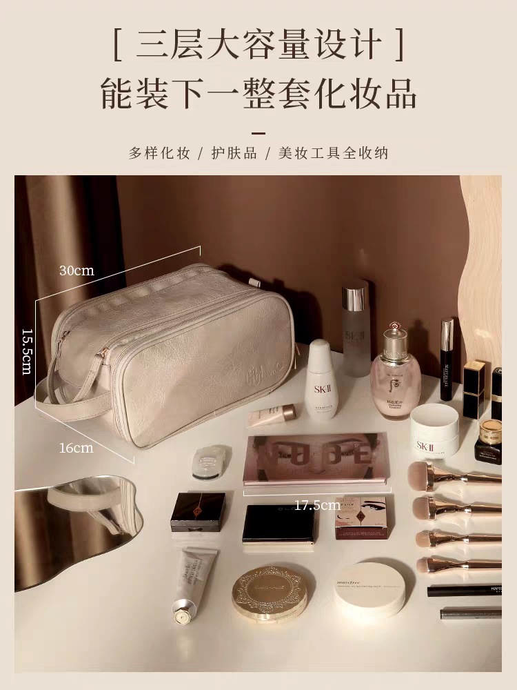 【大容量多功能化妆包】新款双拉链化妆品收纳包 旅行便携洗漱包 国庆节出游