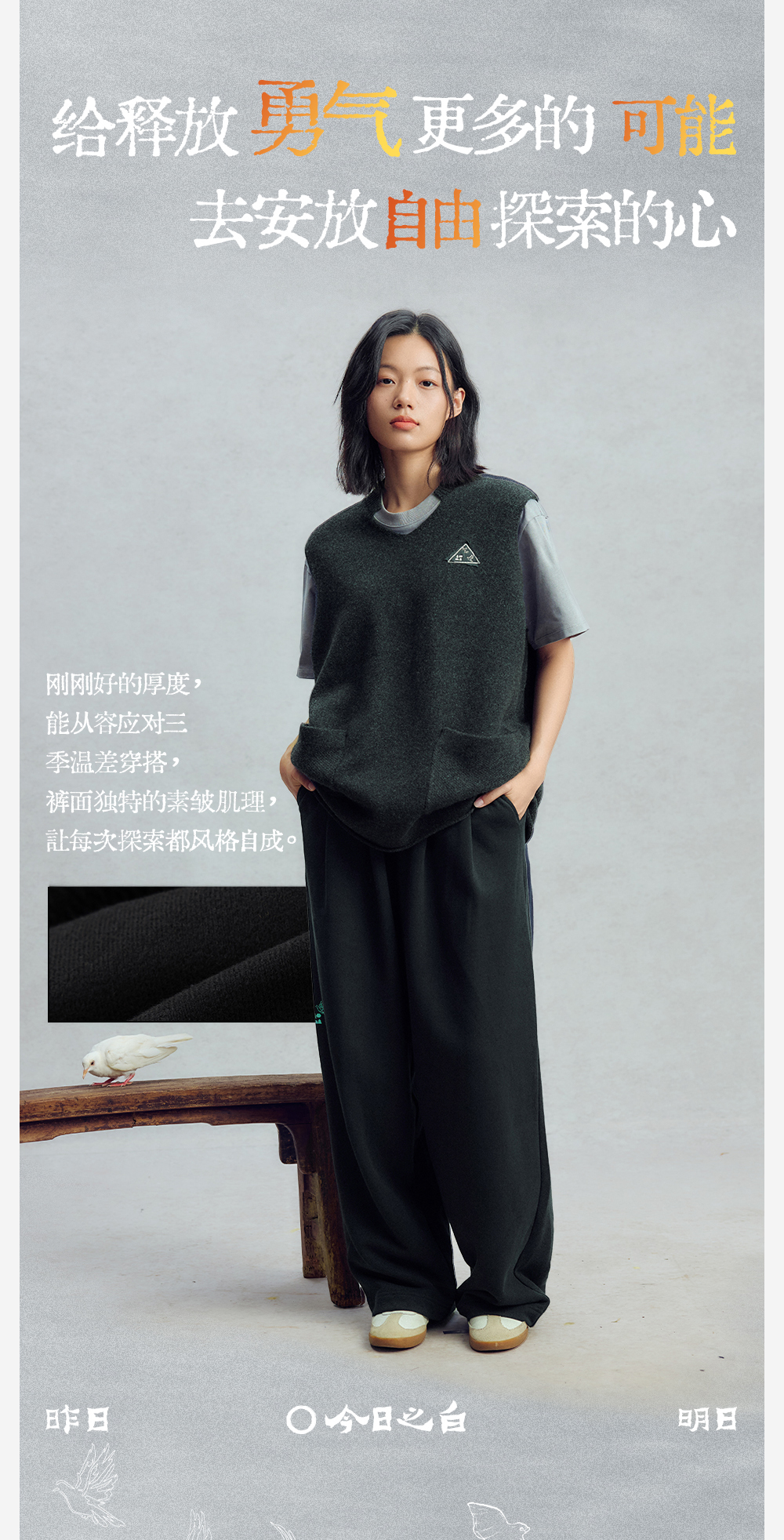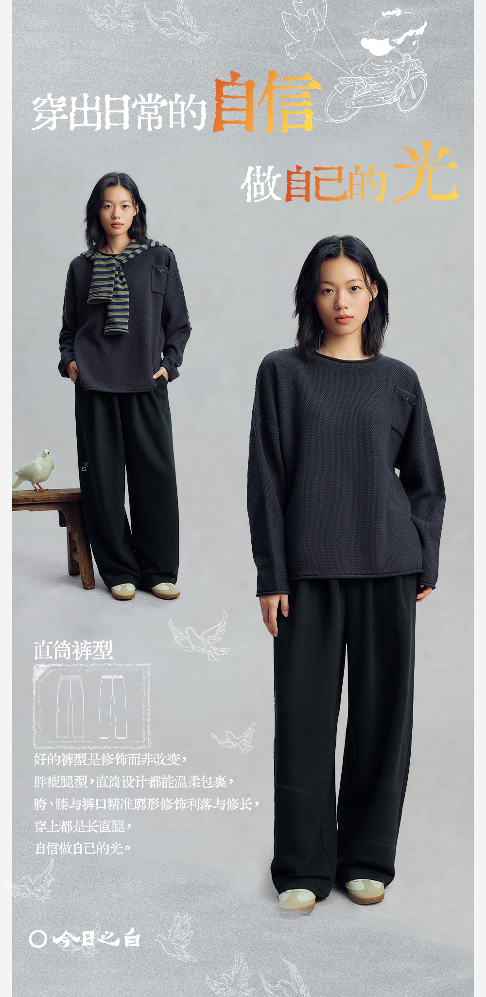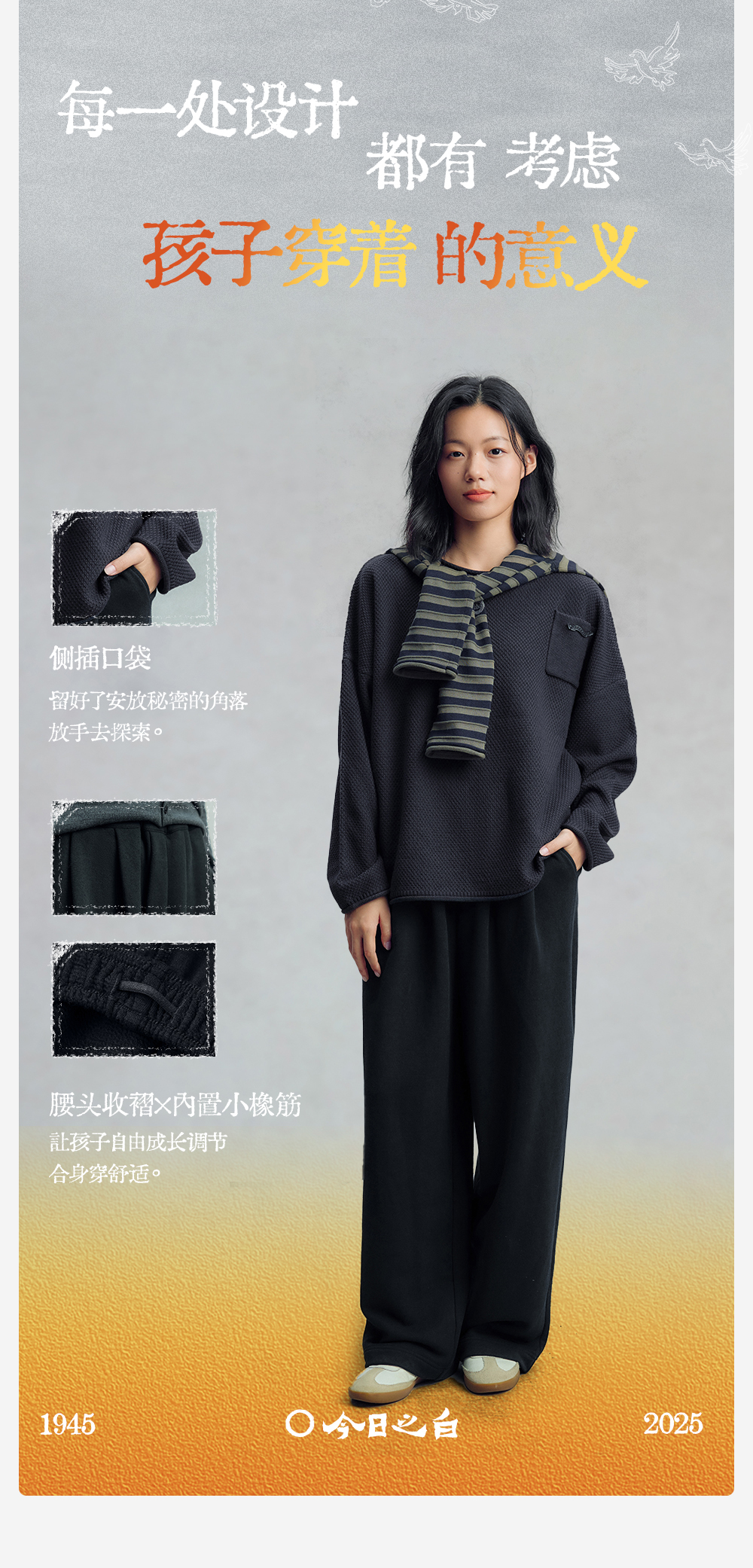 【今日之白系列】森林棠26新款素皱棉宽松百搭休闲舒适弹力儿童直筒裤62025516【HZ】