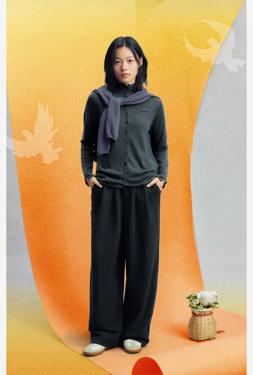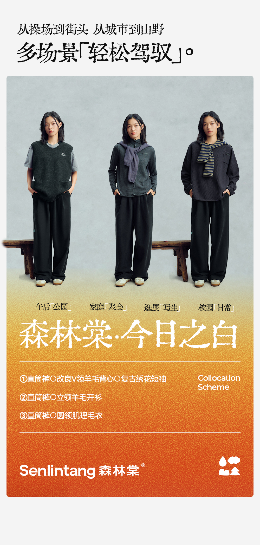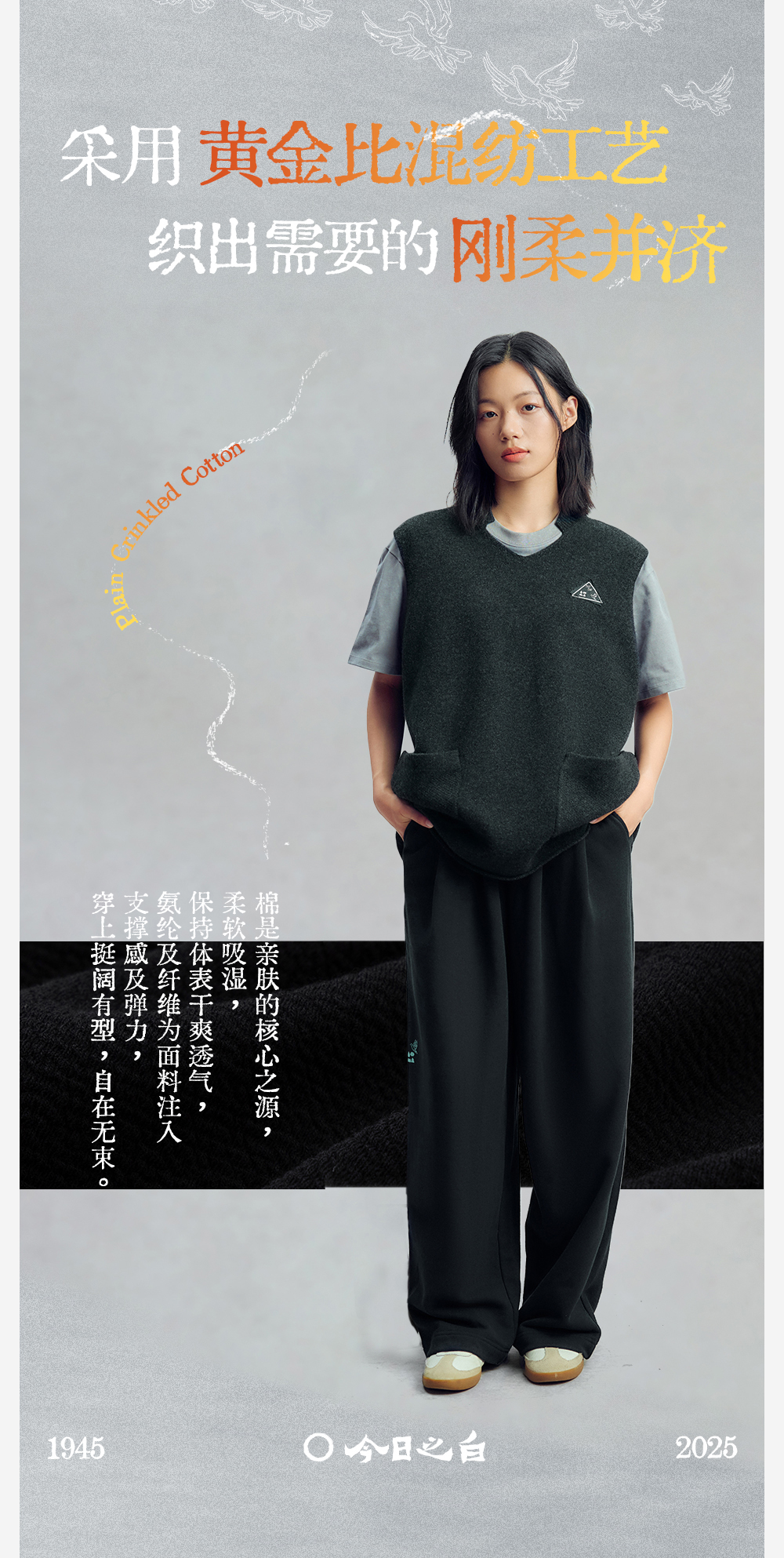 【今日之白系列】森林棠26新款素皱棉宽松百搭休闲舒适弹力儿童直筒裤62025516【HZ】