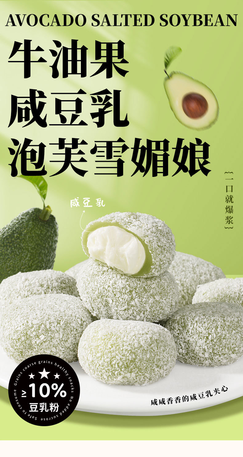 【一口就爆浆!不单独添加蔗糖牛油果雪媚娘】不一样的口感,牛油果泡芙爆浆雪媚娘 干净卫生独立包装小零食 早餐下午茶休闲零食