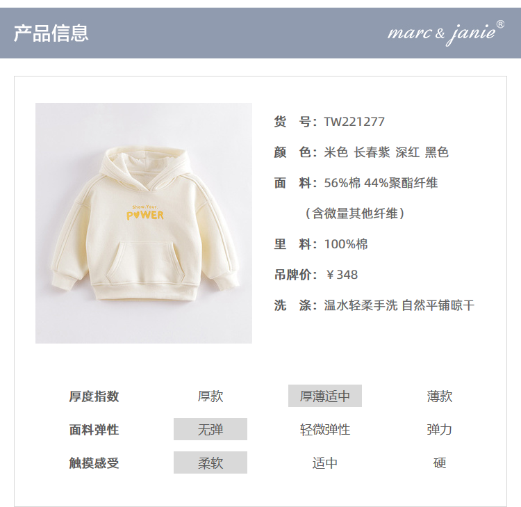 马克珍妮秋装新款 男女童字母连帽运动卫衣 儿童上衣221277