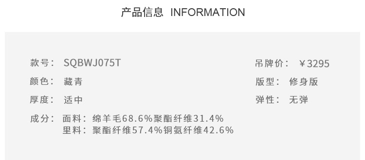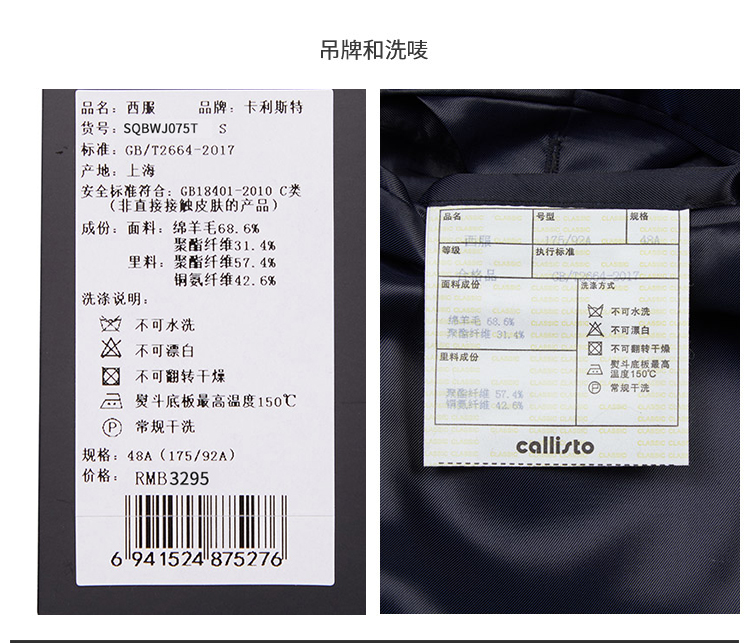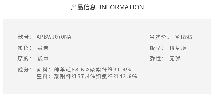 callisto羊毛混纺基本款西服上装APBWJ070NA
