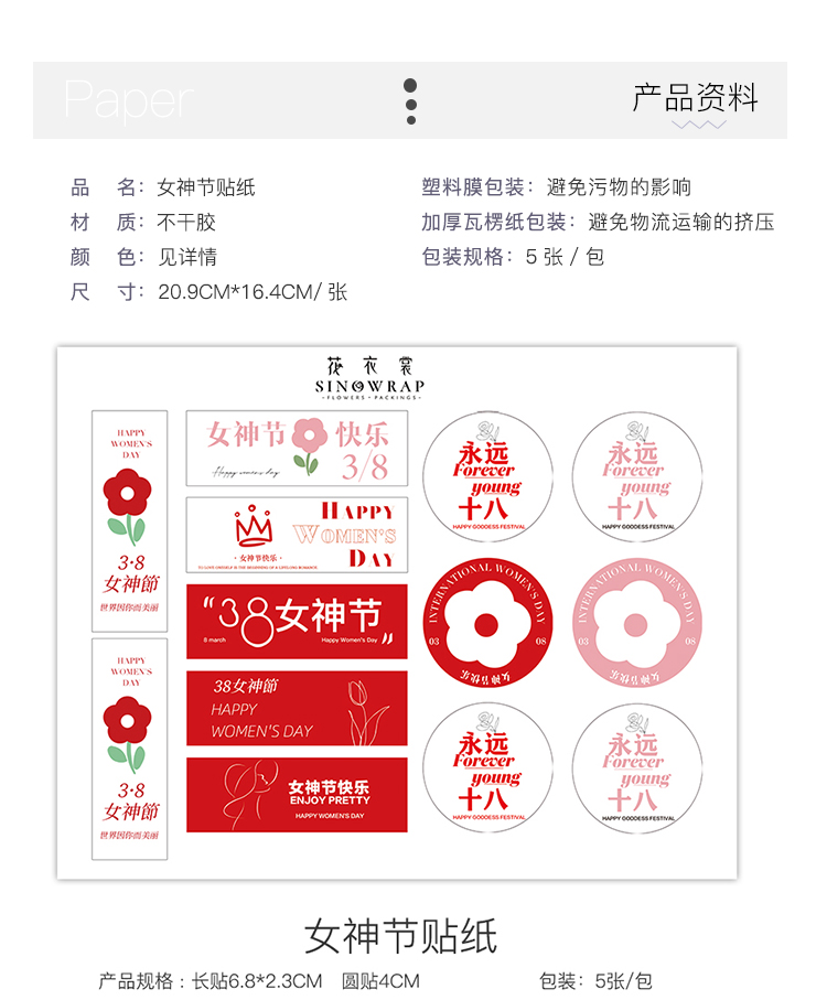 女神节贴纸(5张/包)