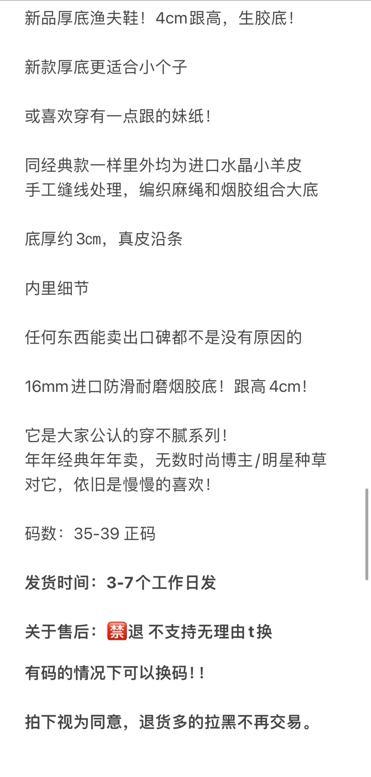 新款厚底渔夫鞋 三色入 4cm厚底16mm进口防滑生胶底