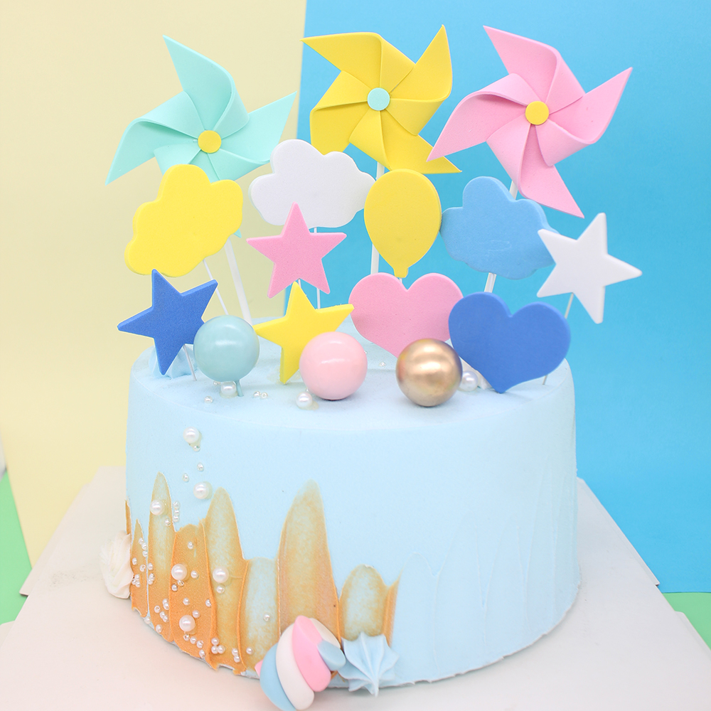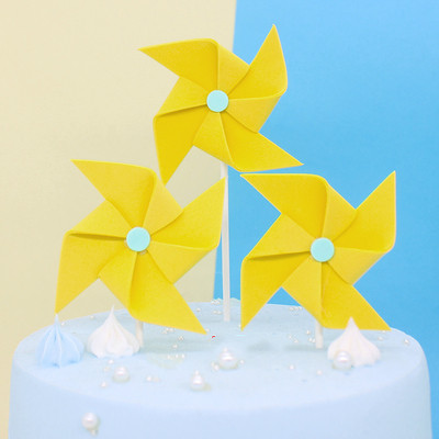 泡沫风车插件 3支装 蛋糕装饰插件 海绵风车插牌甜品台装扮