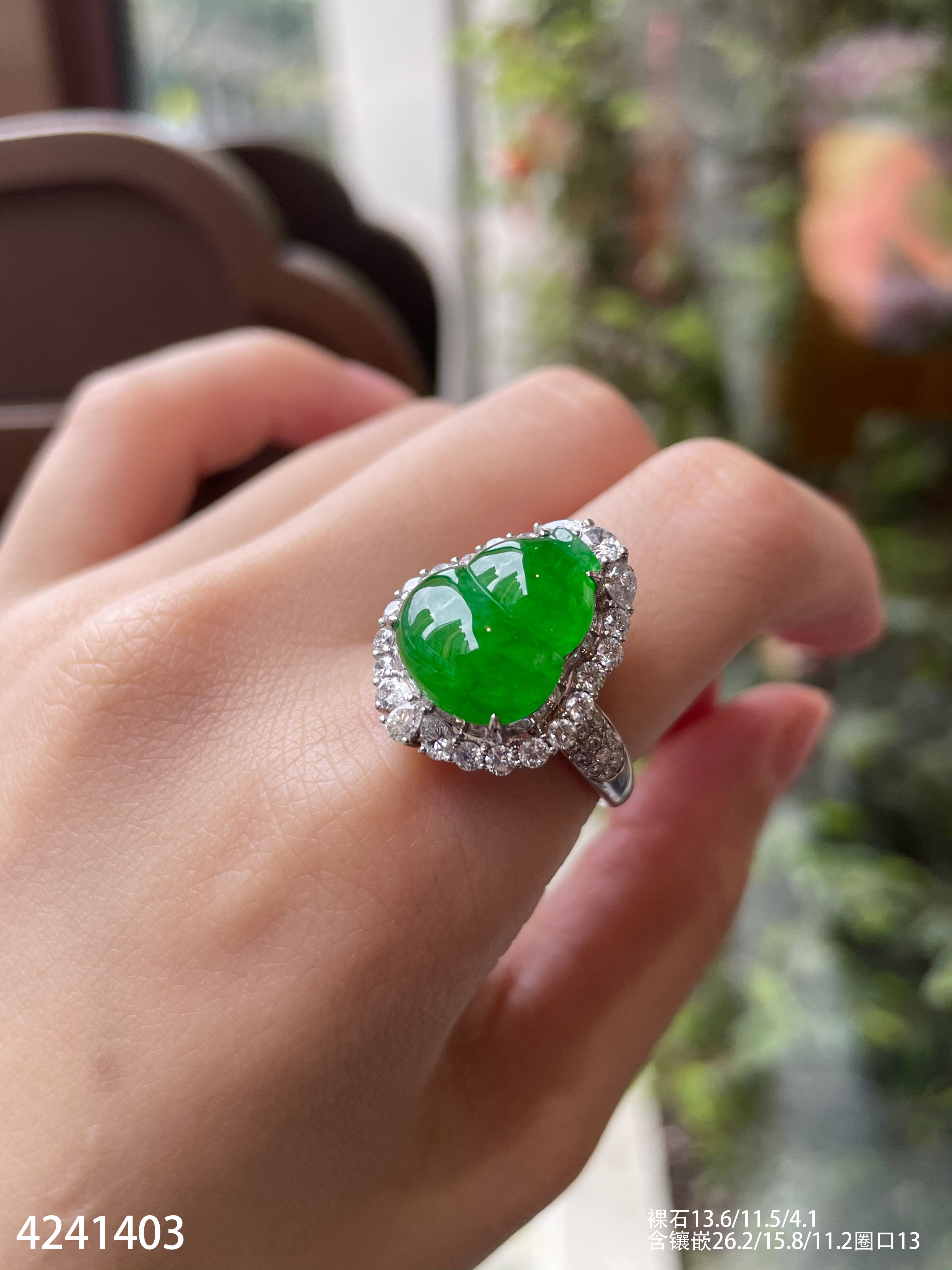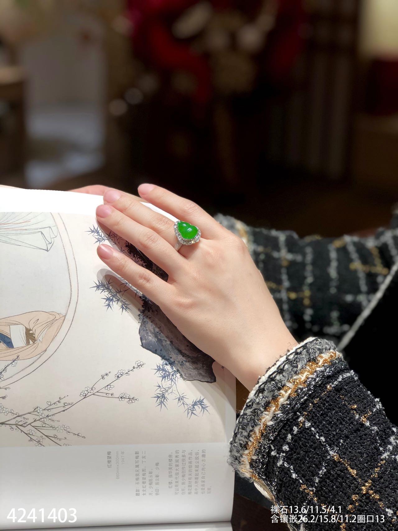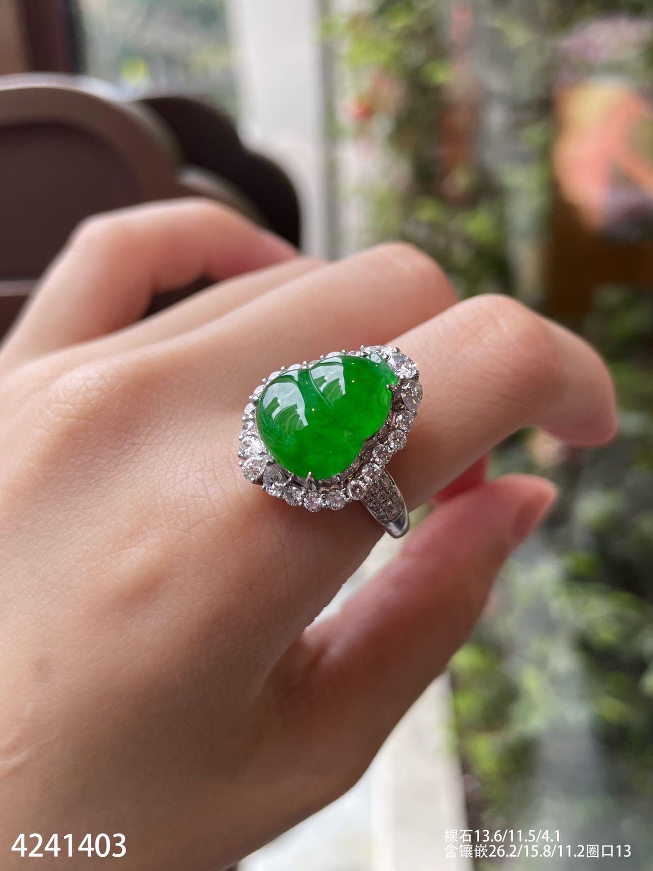 4241403、老坑冰艳绿葫芦戒指吊坠两用款。具体价格微信咨询