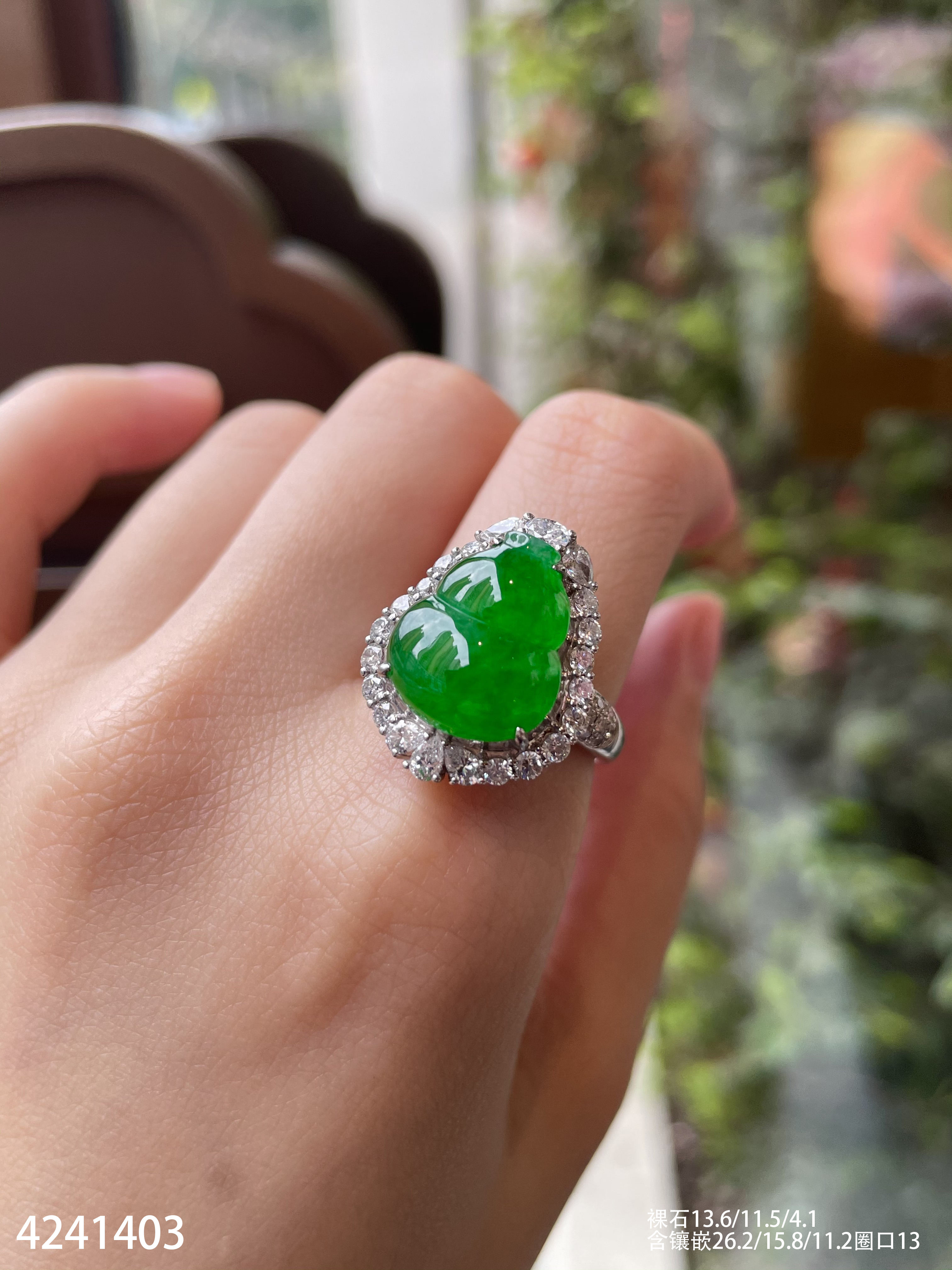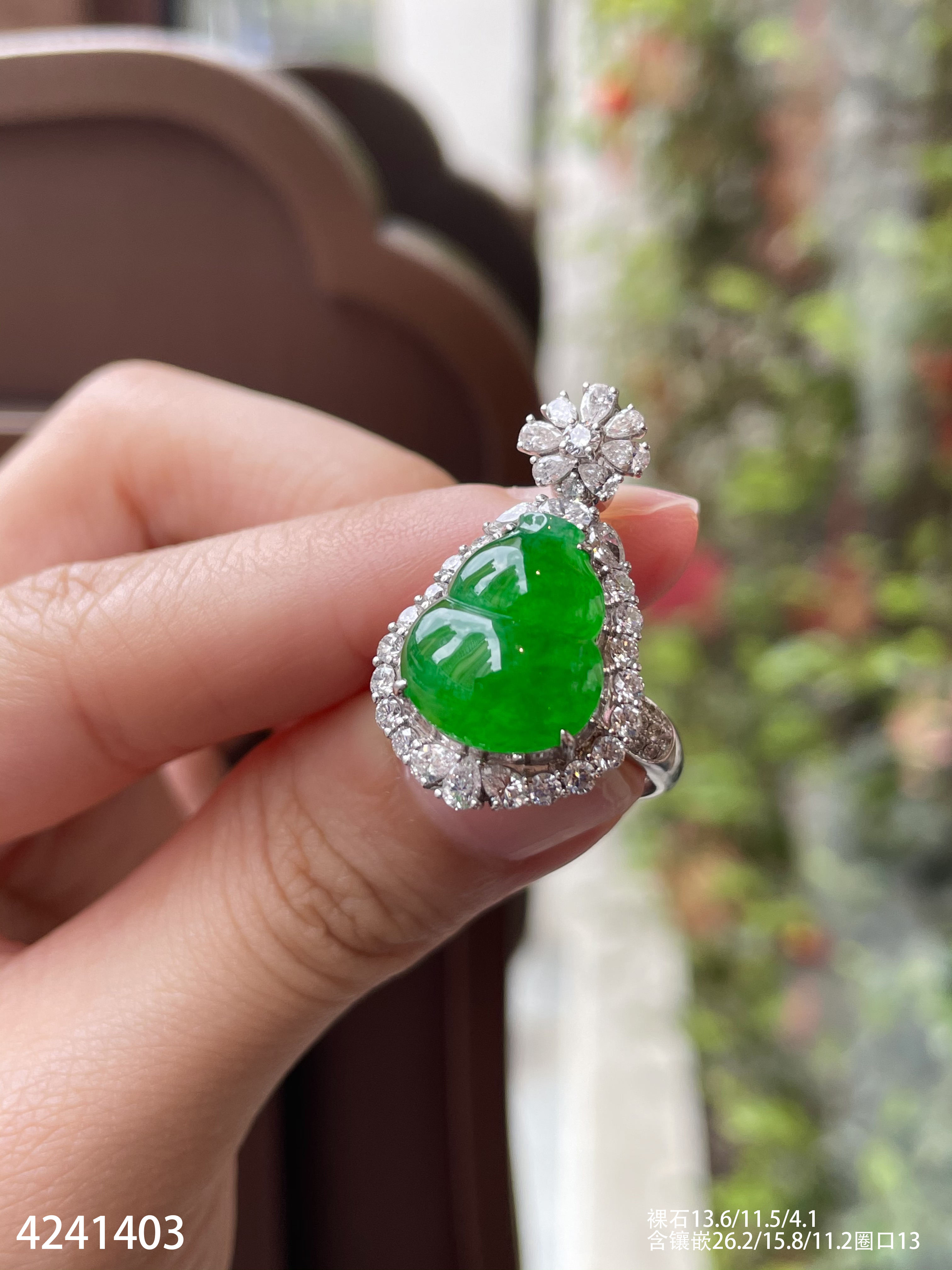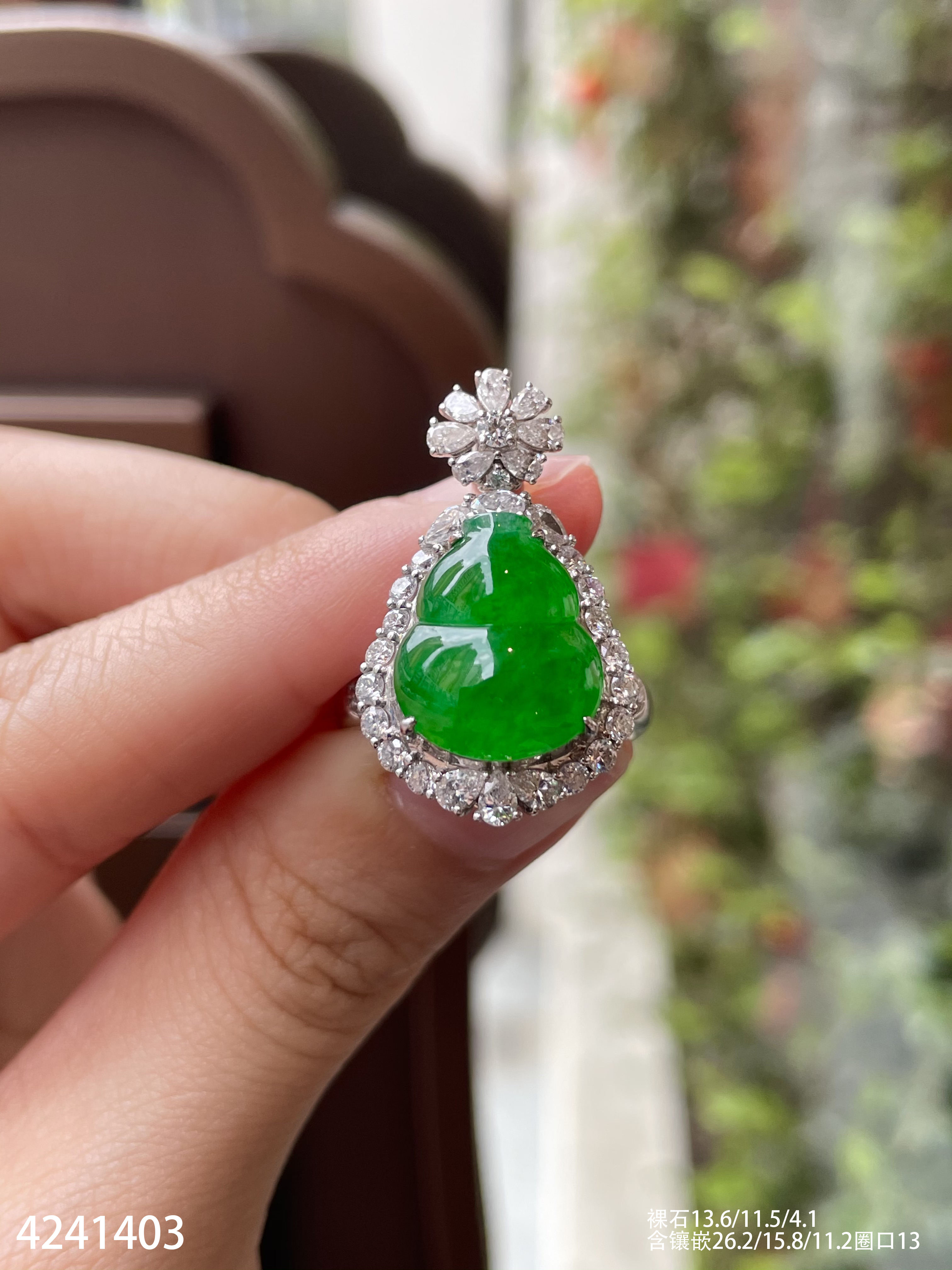 4241403、老坑冰艳绿葫芦戒指吊坠两用款。具体价格微信咨询