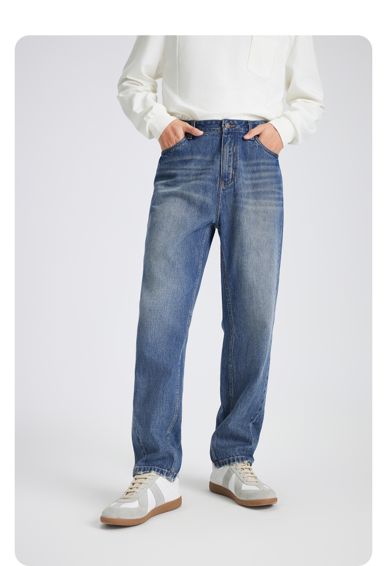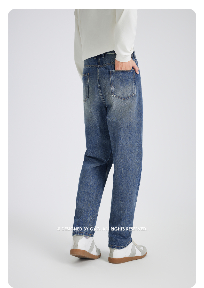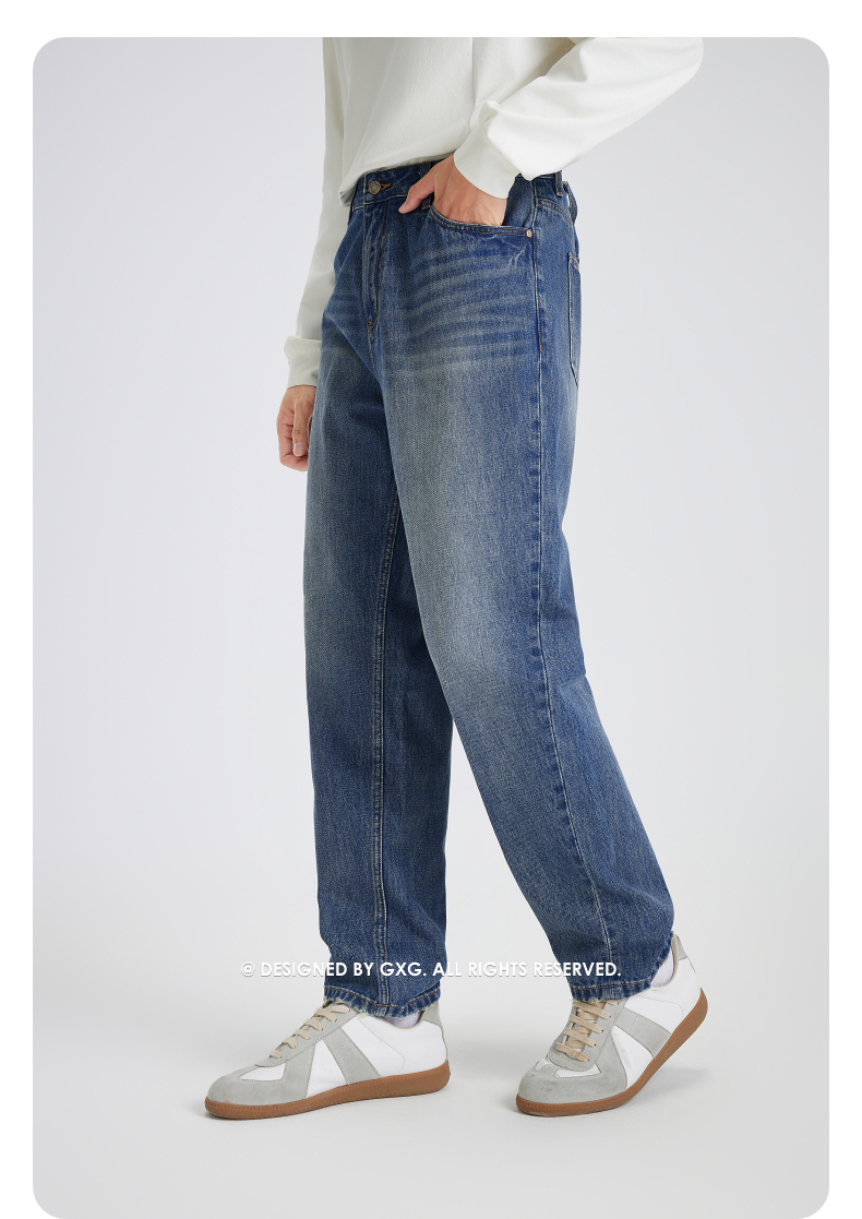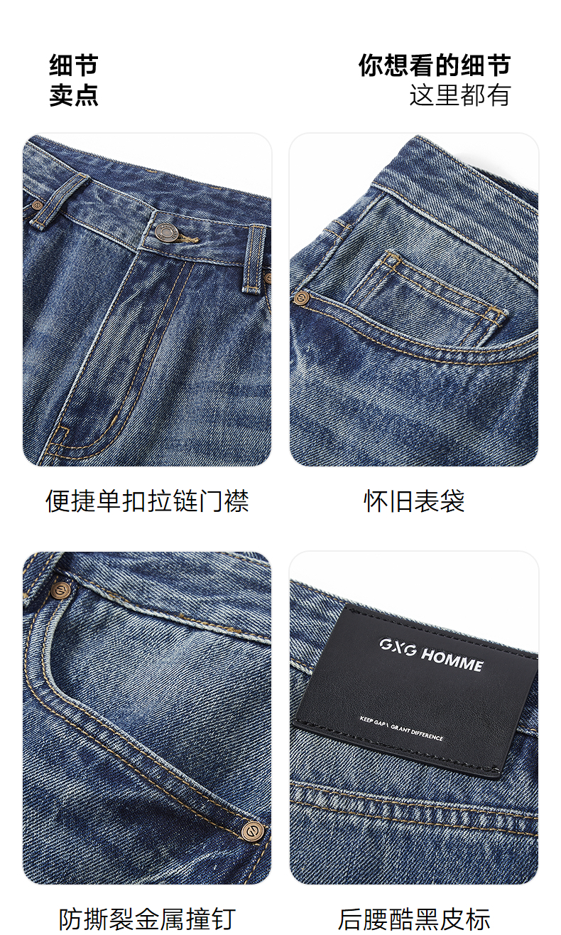 GXG男装 重磅做旧水洗弯刀宽松锥型潮流中腰牛仔裤 2025秋季新品