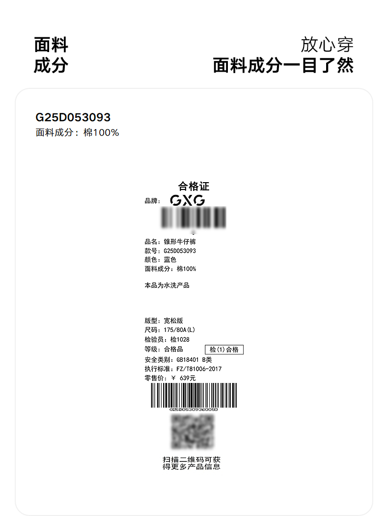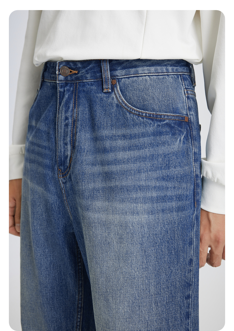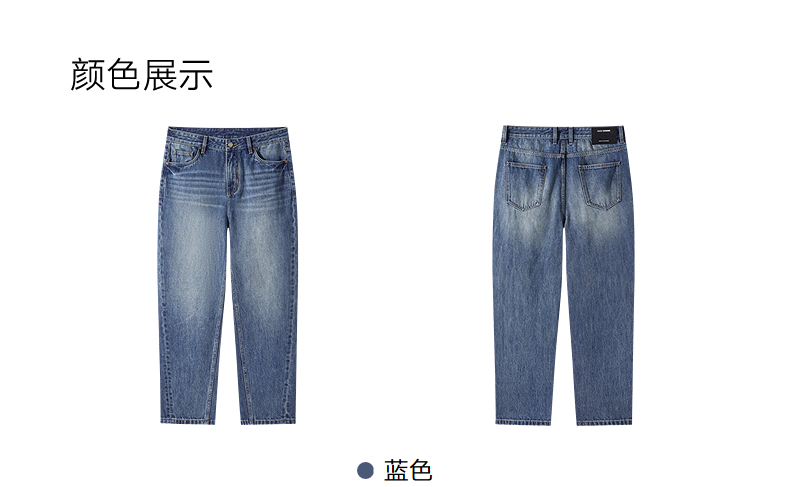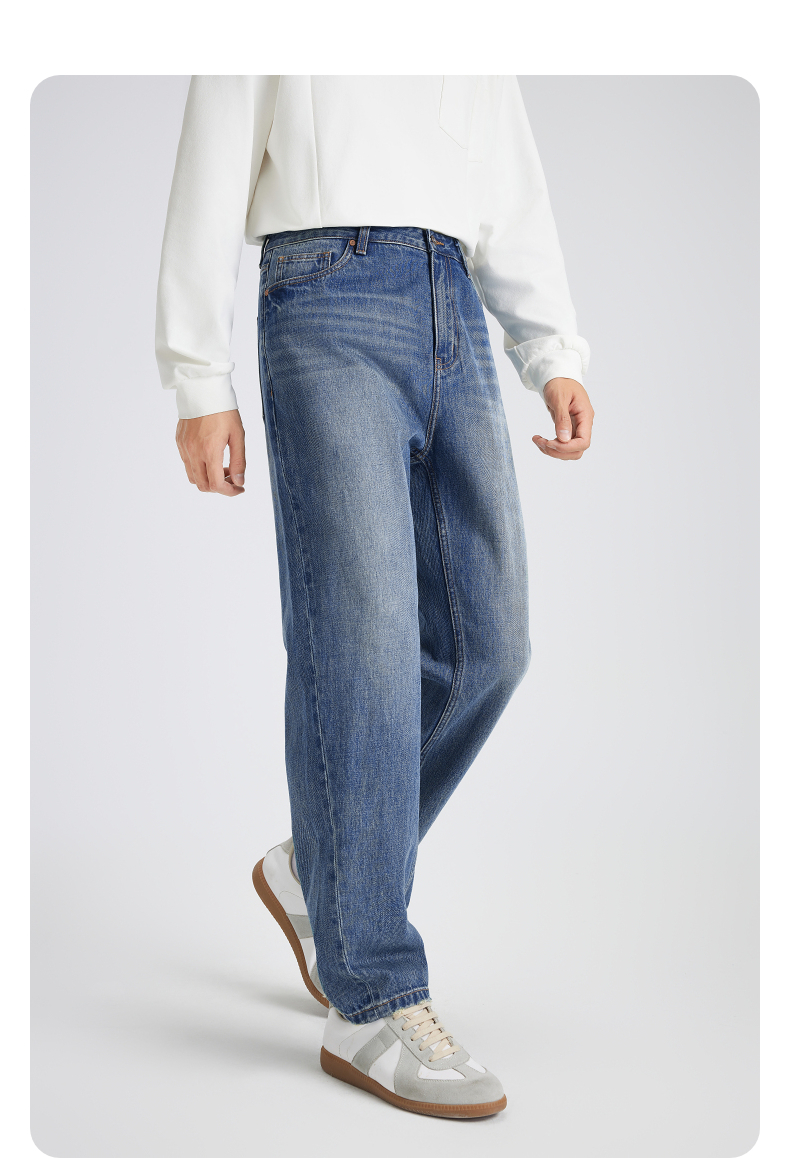 GXG男装 重磅做旧水洗弯刀宽松锥型潮流中腰牛仔裤 2025秋季新品