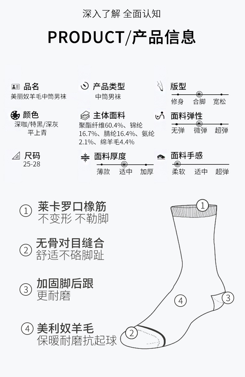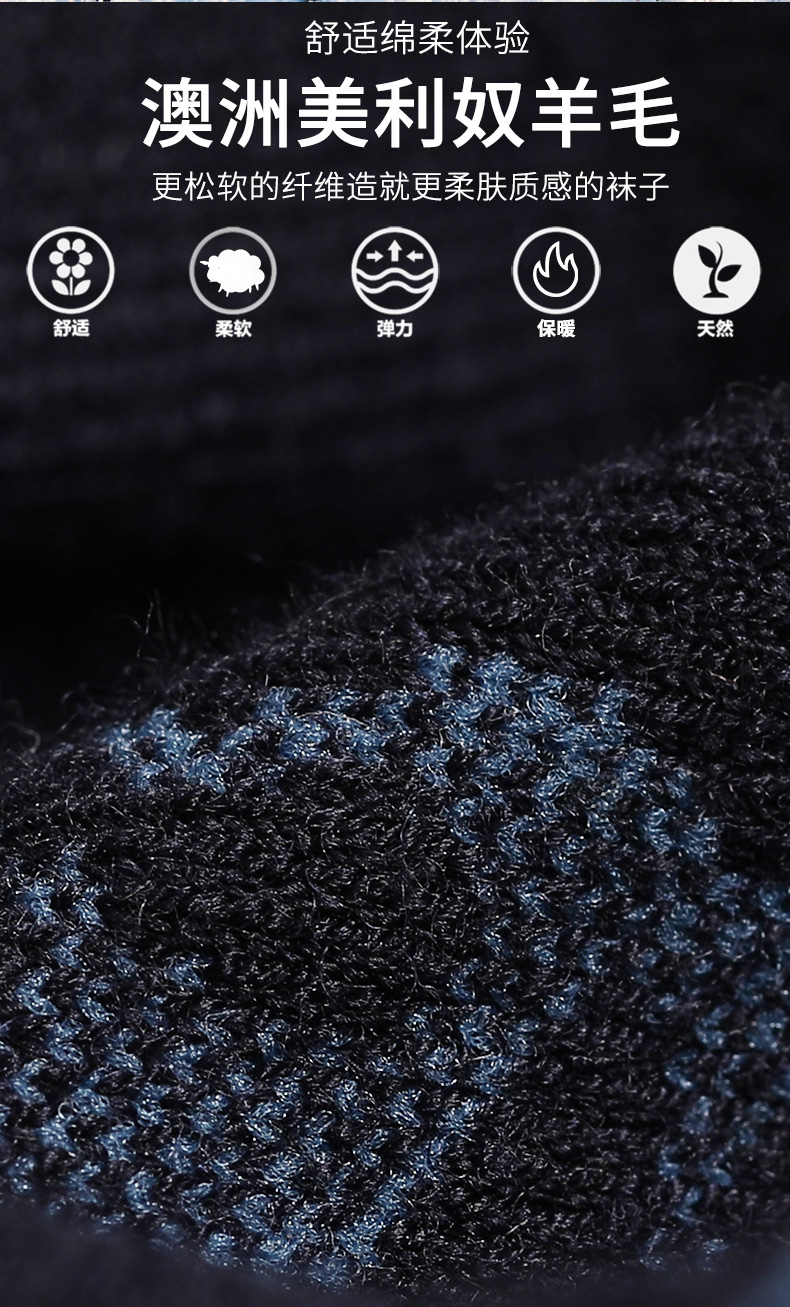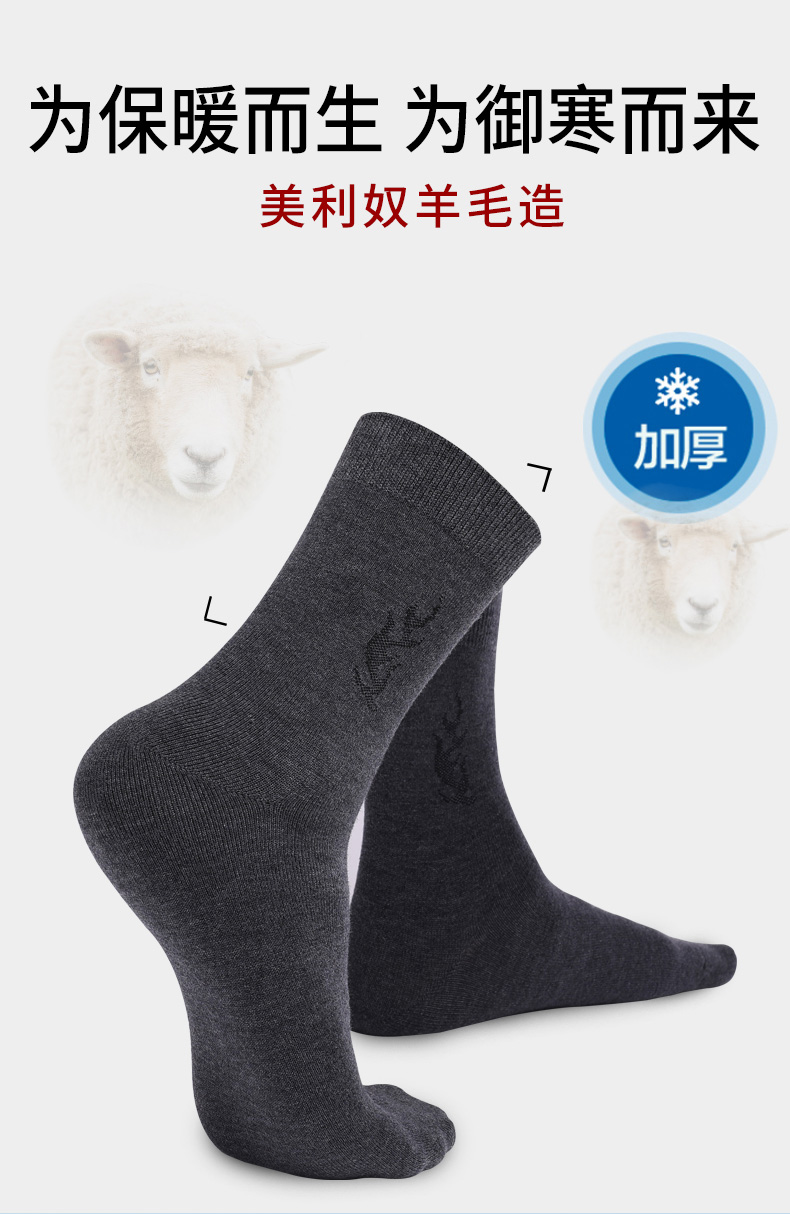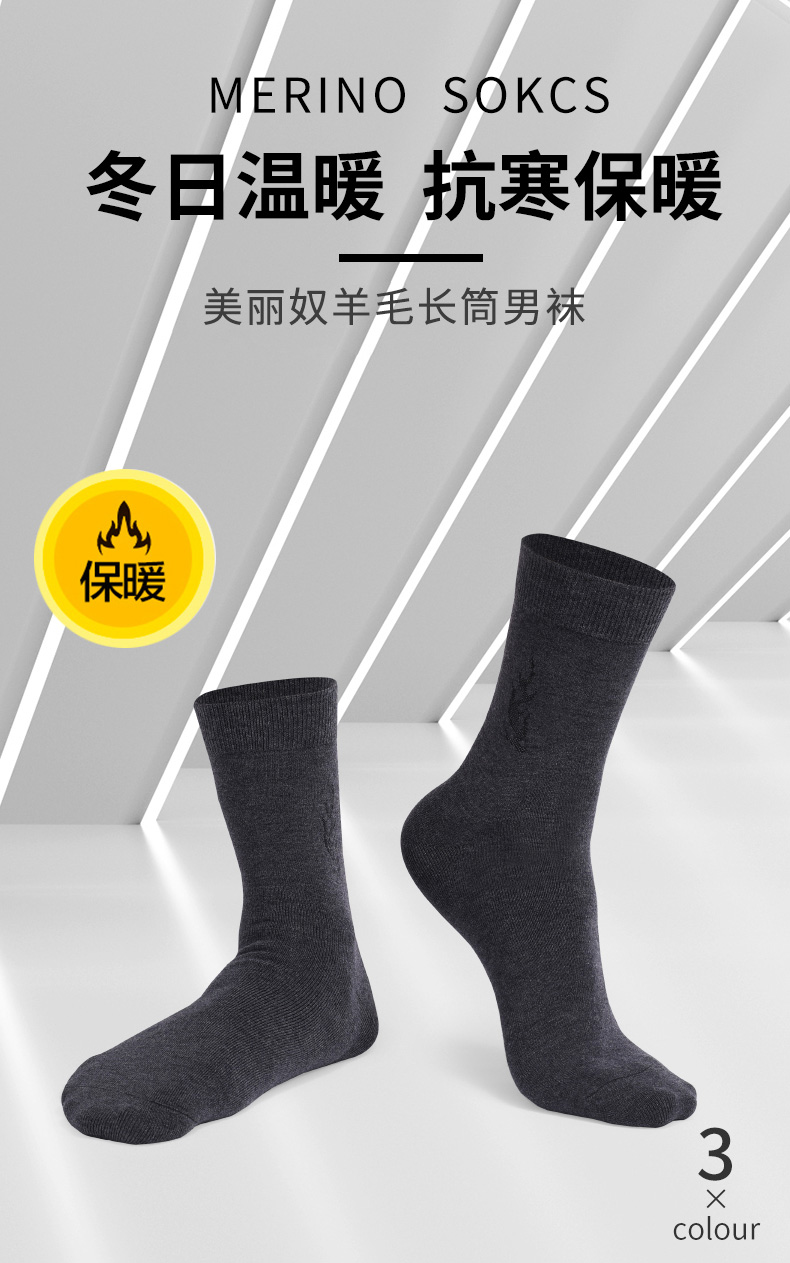 洁丽雅3双装长筒男袜美丽奴羊毛长筒男袜纯色简约防寒保暖袜子男