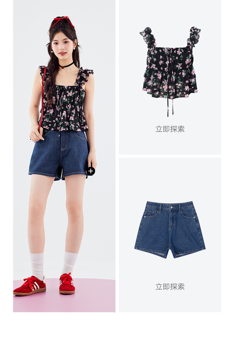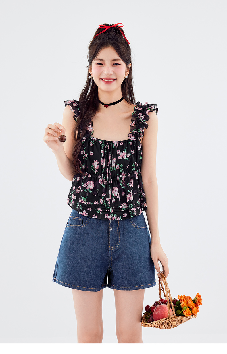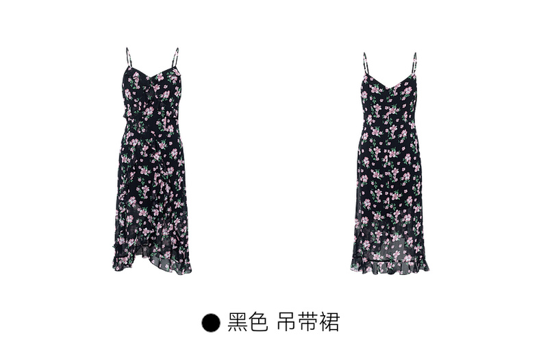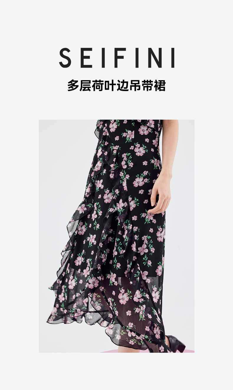 【严选】诗凡黎连衣裙吊带裙子女2024春夏新款碎花印花浪漫荷叶边温柔SF5491681