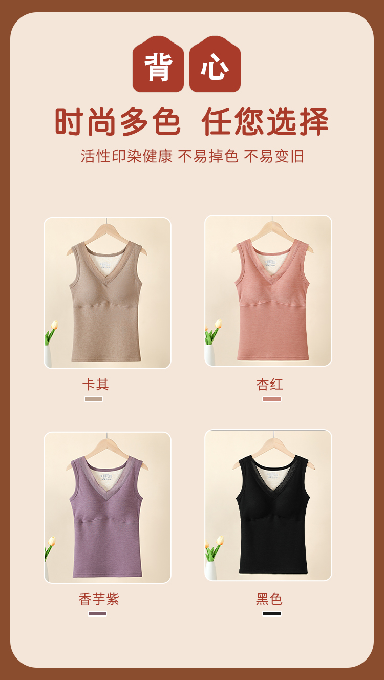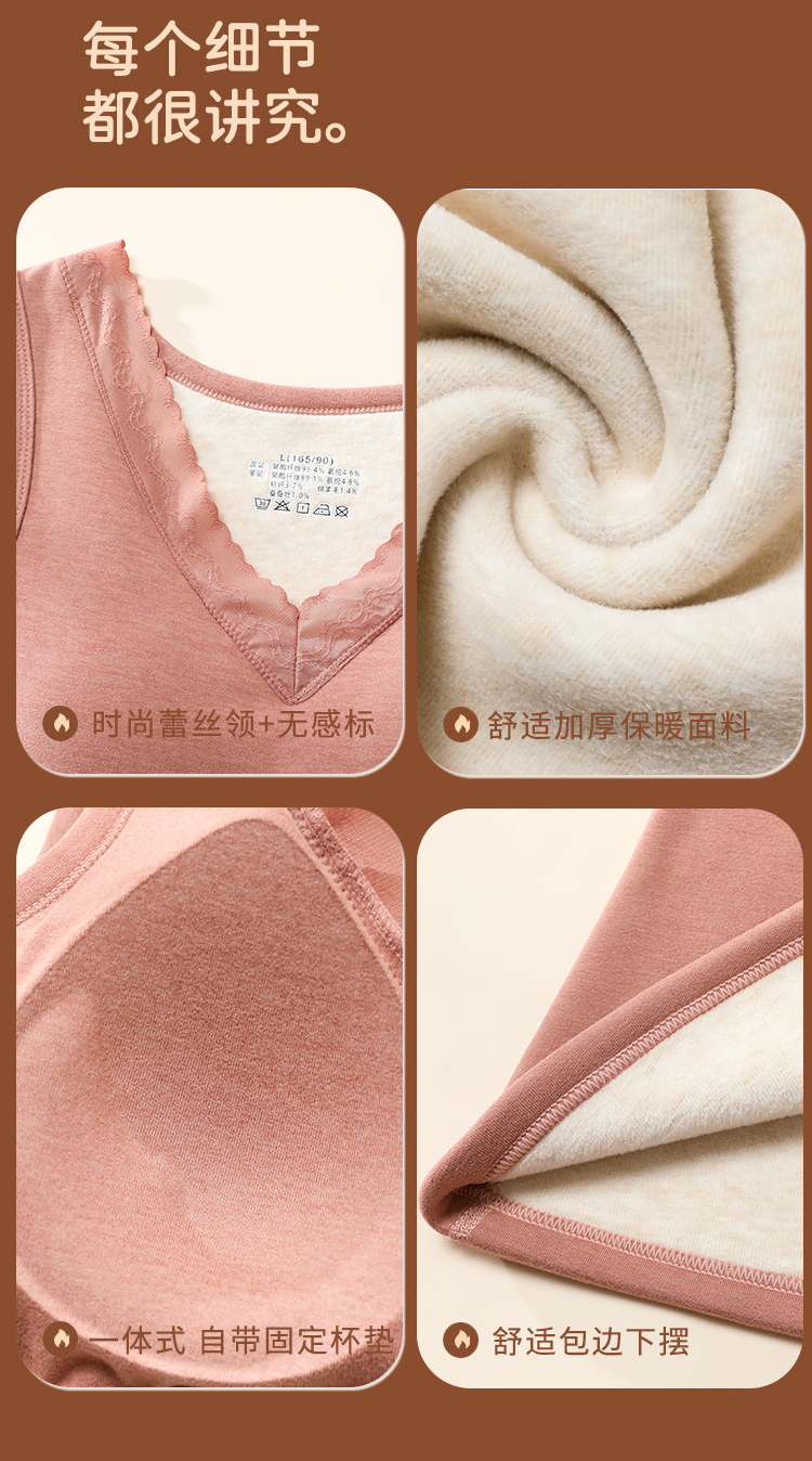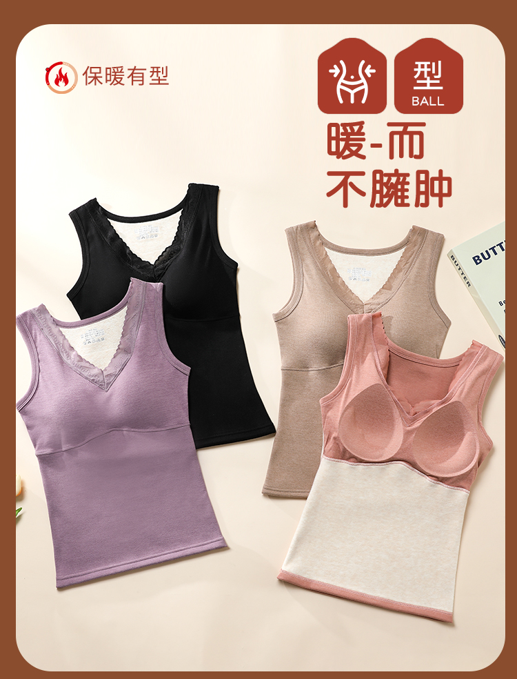 男女士加肥加大考拉绒羊毛蚕丝加厚聚暖保暖背心带罩杯蕾丝花边2521/2523/2531