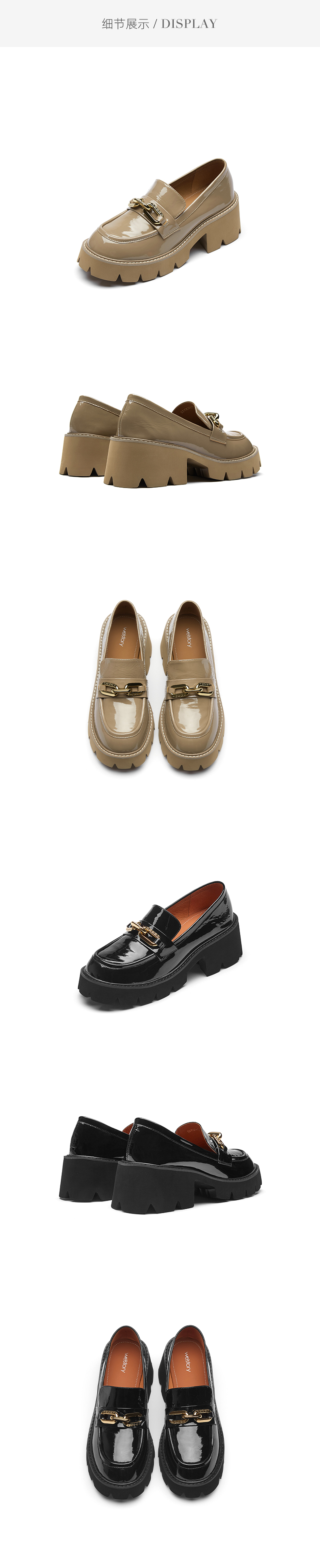 westory秋冬新款皮鞋漆皮中跟女鞋马蹄跟深口单鞋W273M70591