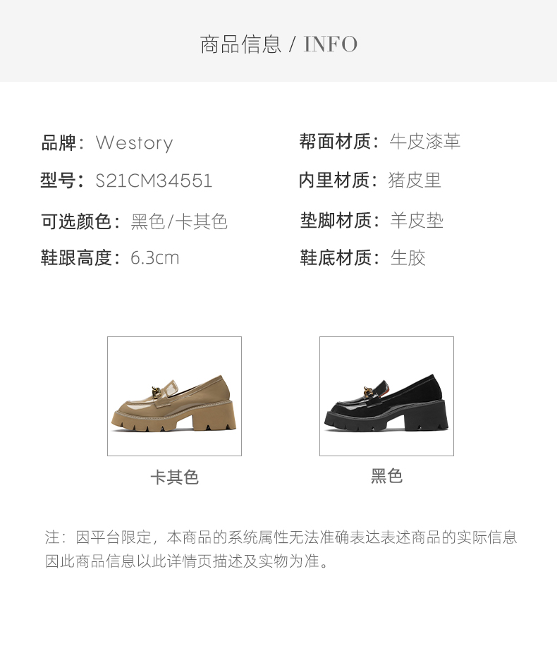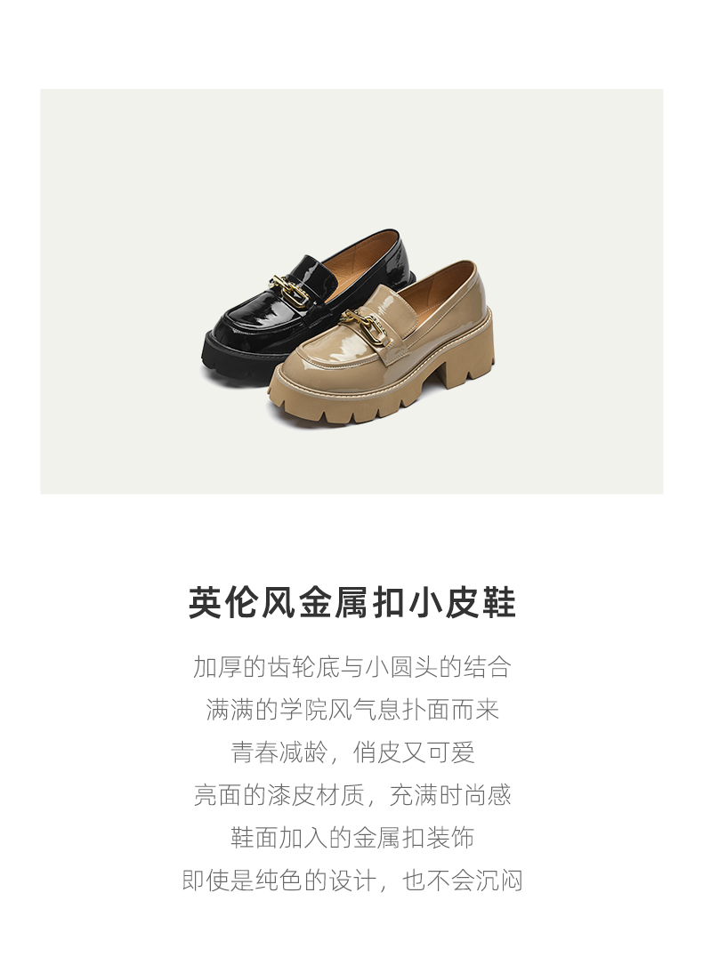 westory2021秋季新品气质英伦风粗跟小皮鞋S21CM34551
