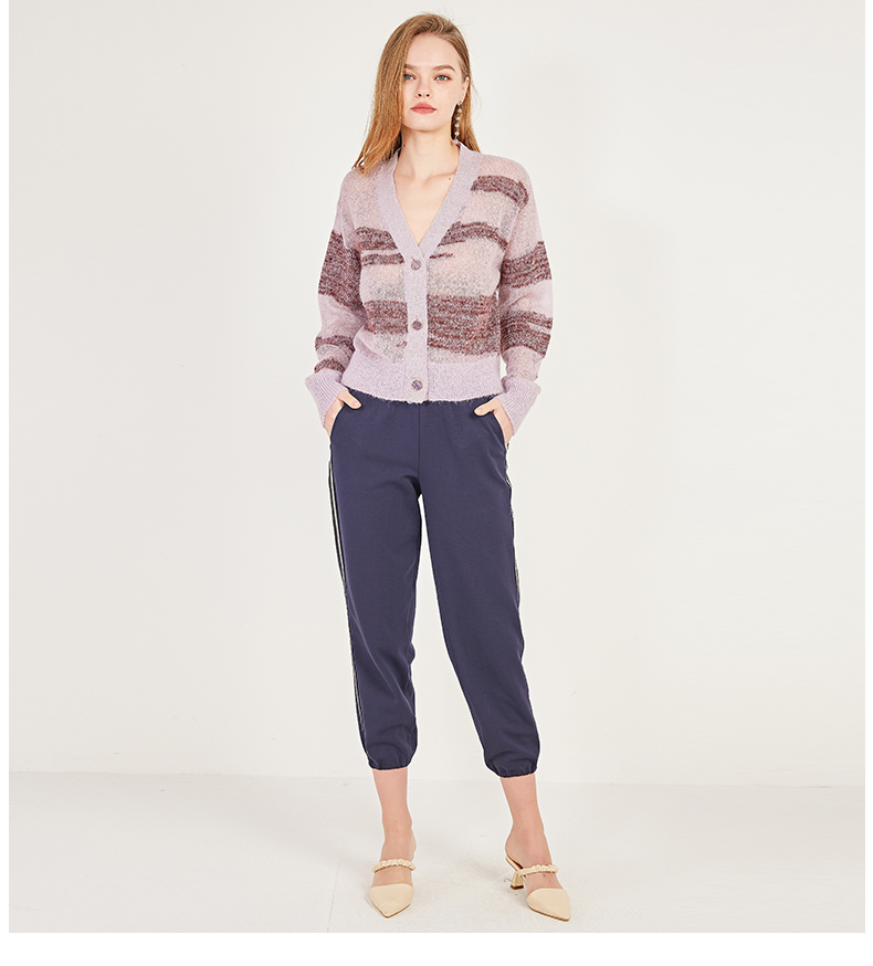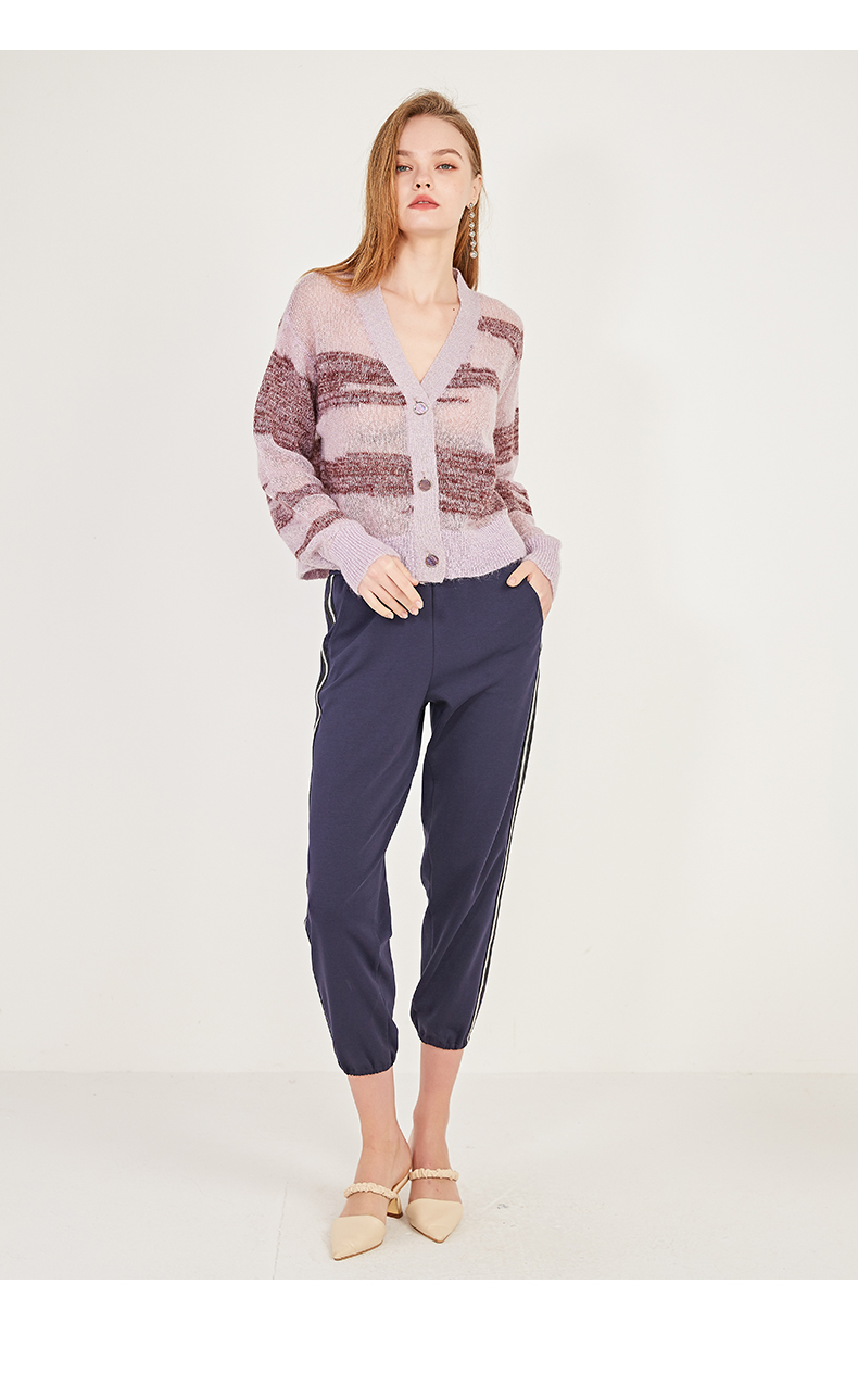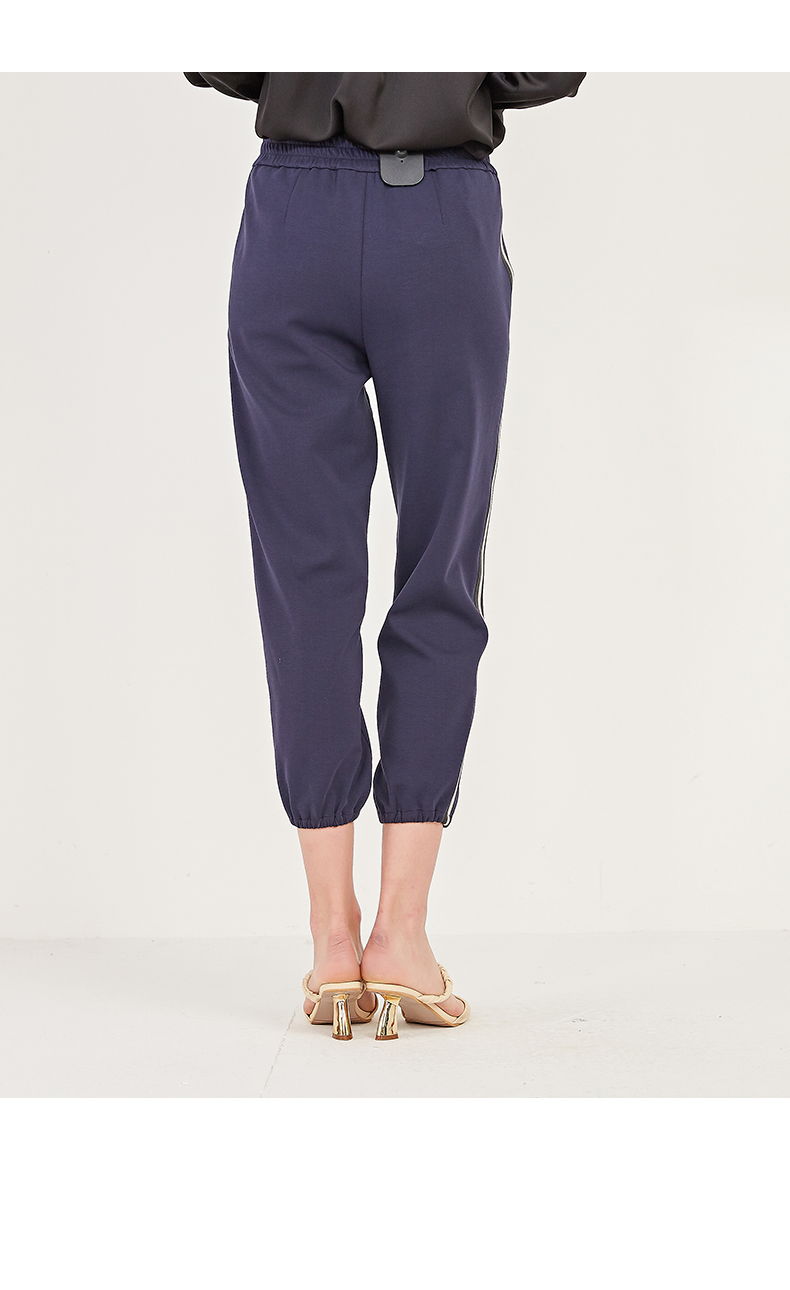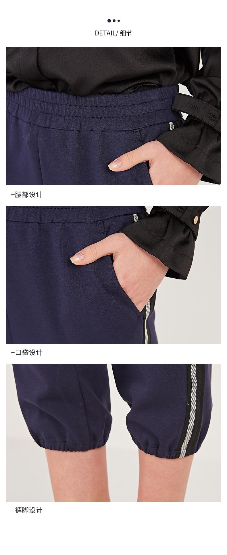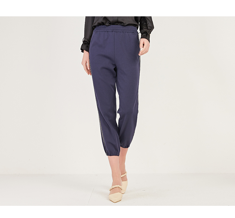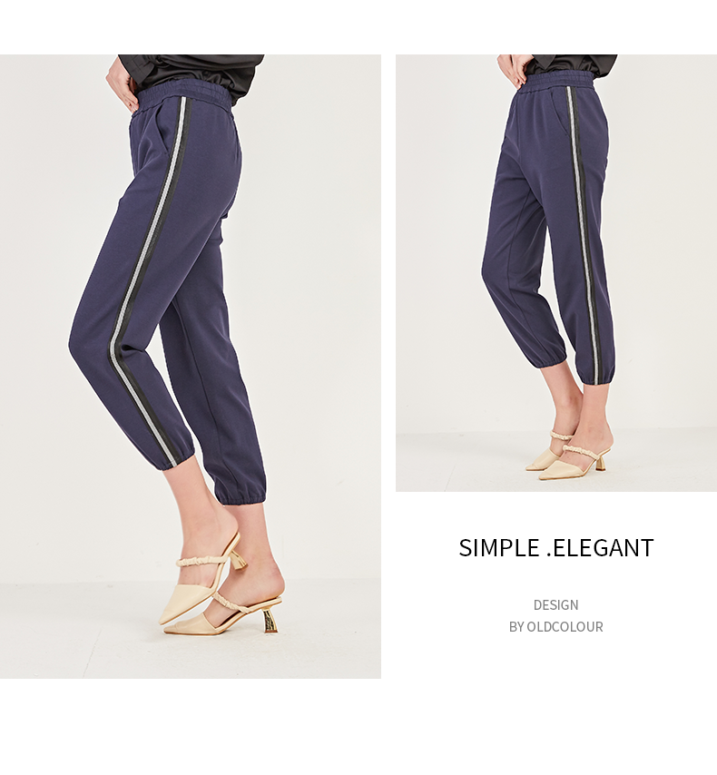 oldcolour春季休闲竖条纹松紧腰束脚运动裤女N12073239