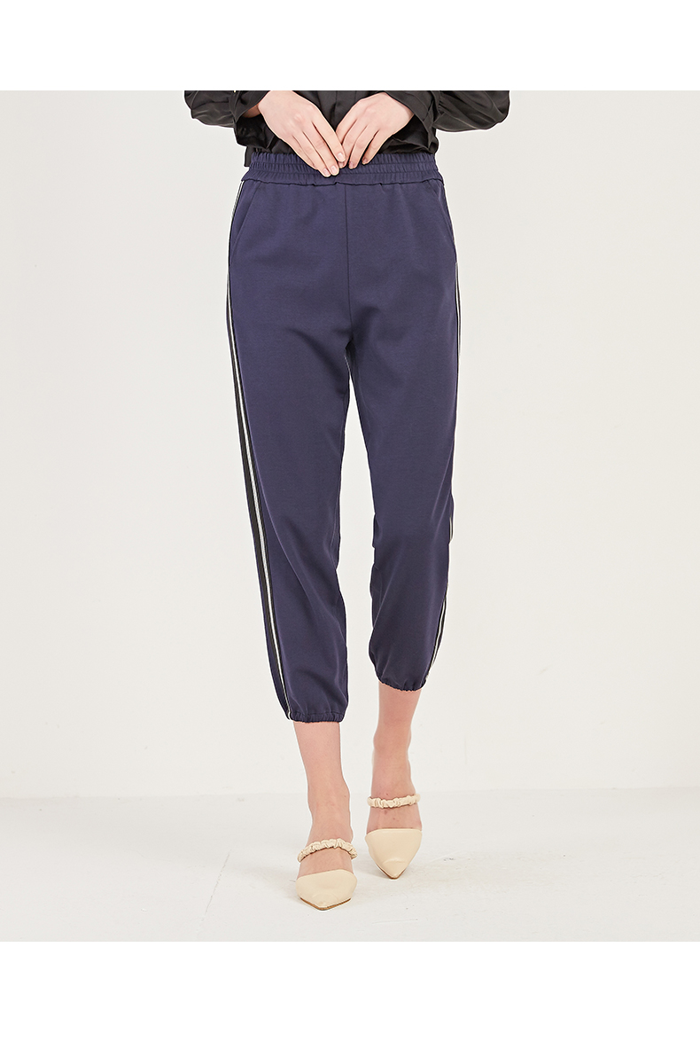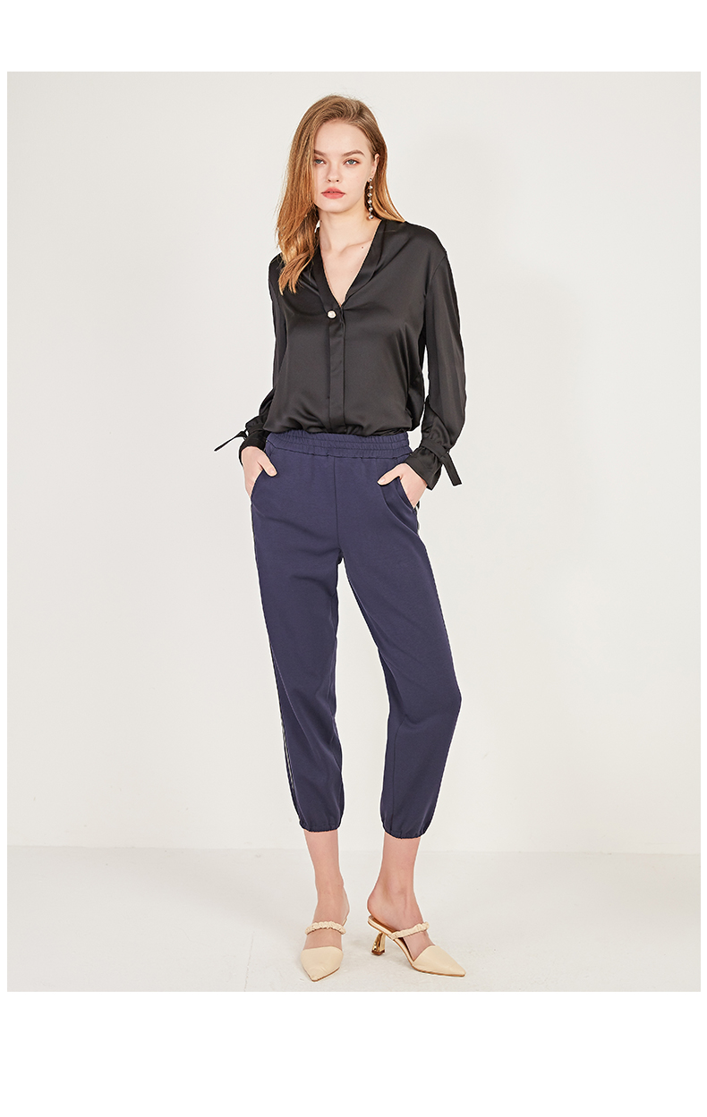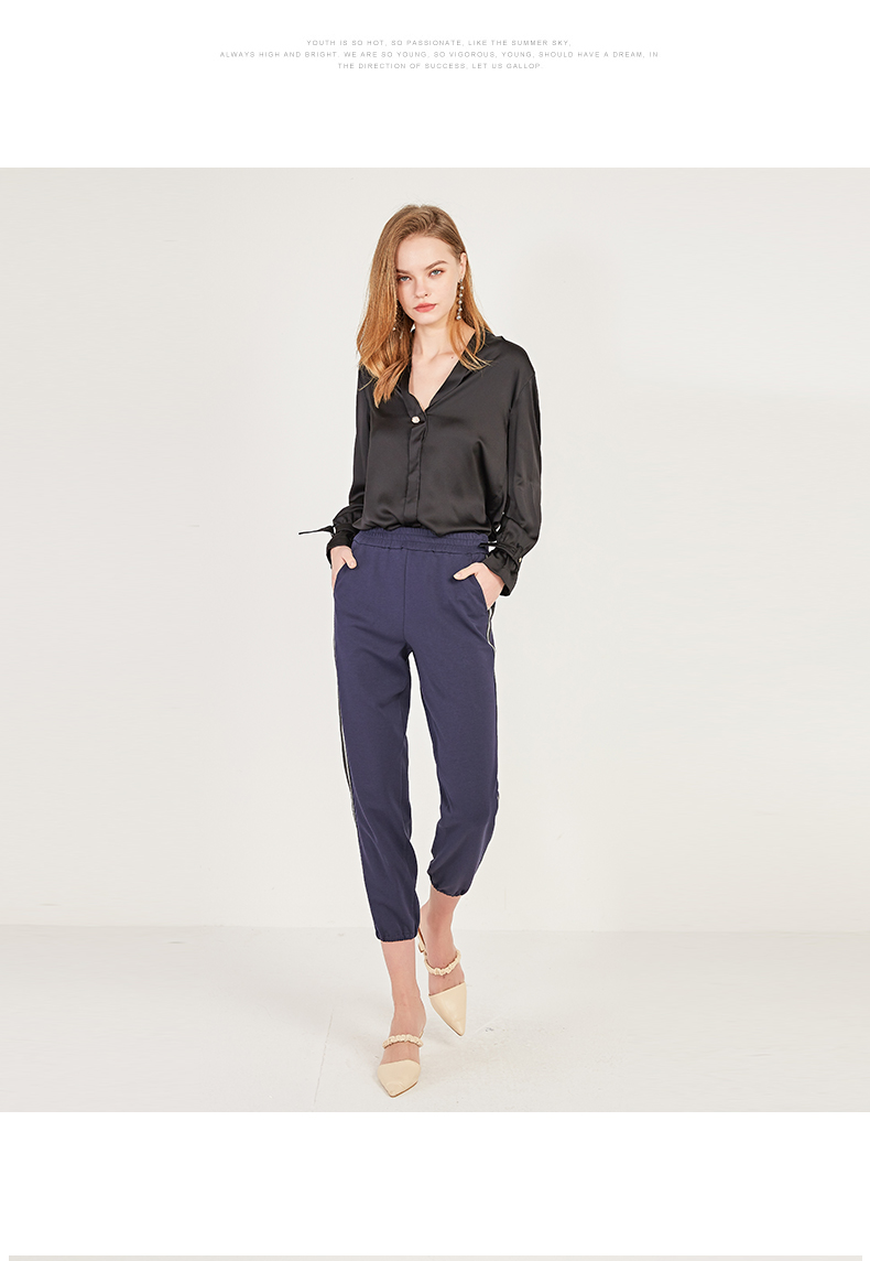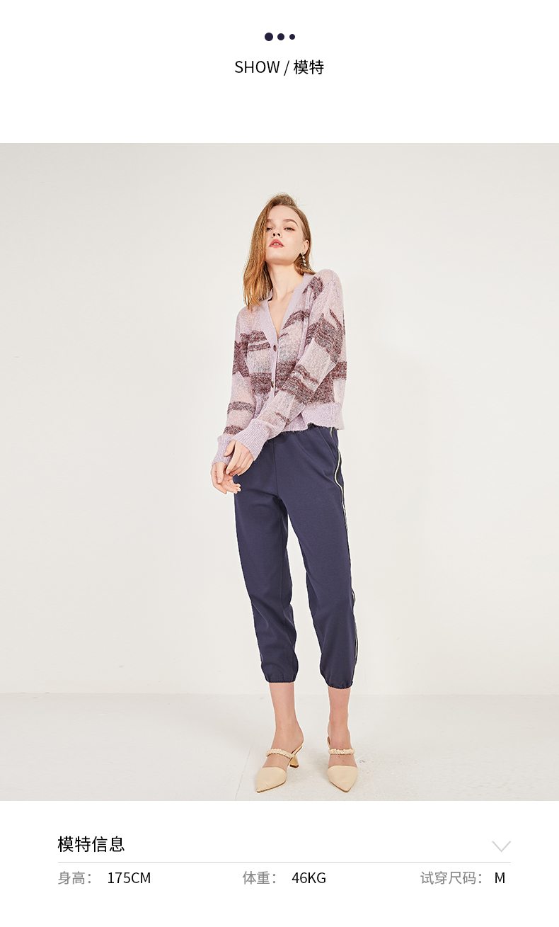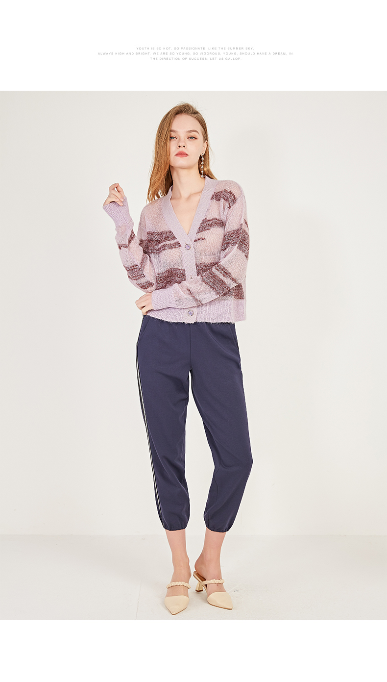 oldcolour春季休闲竖条纹松紧腰束脚运动裤女N12073239