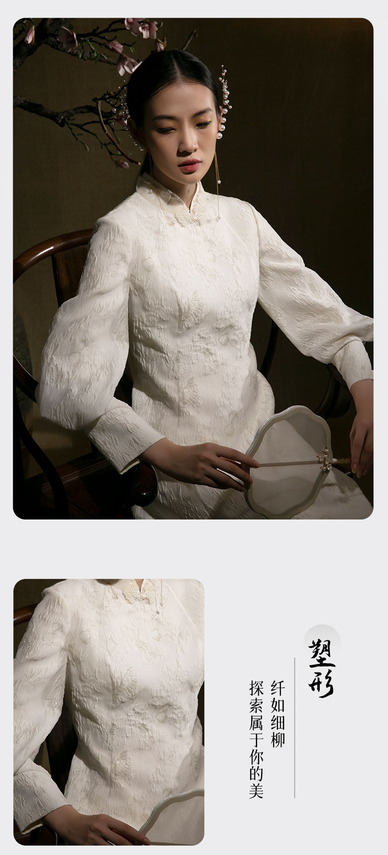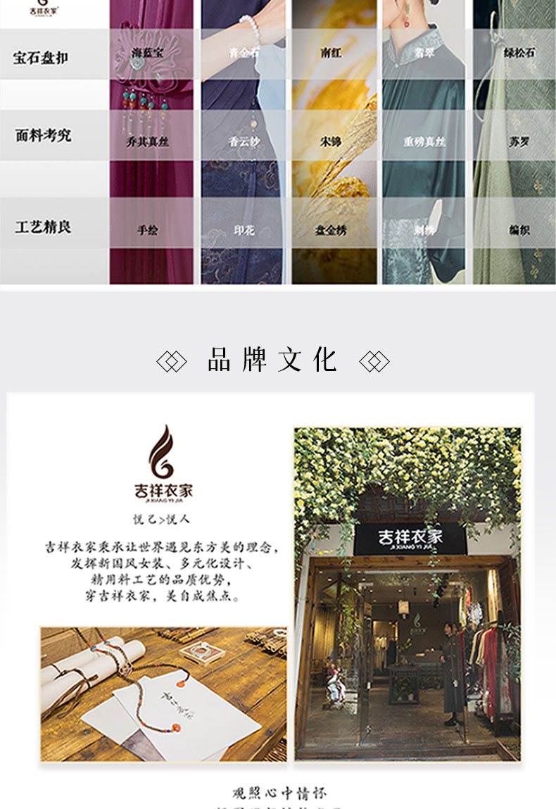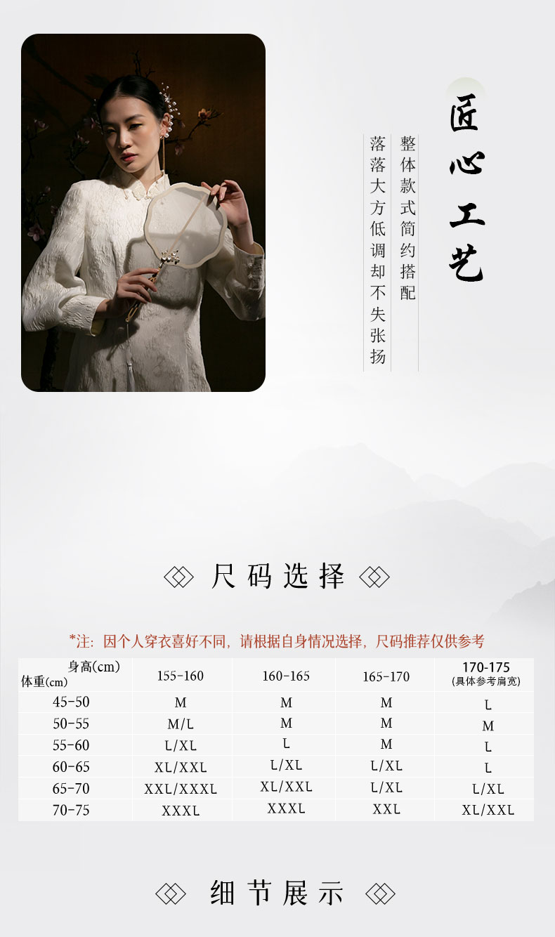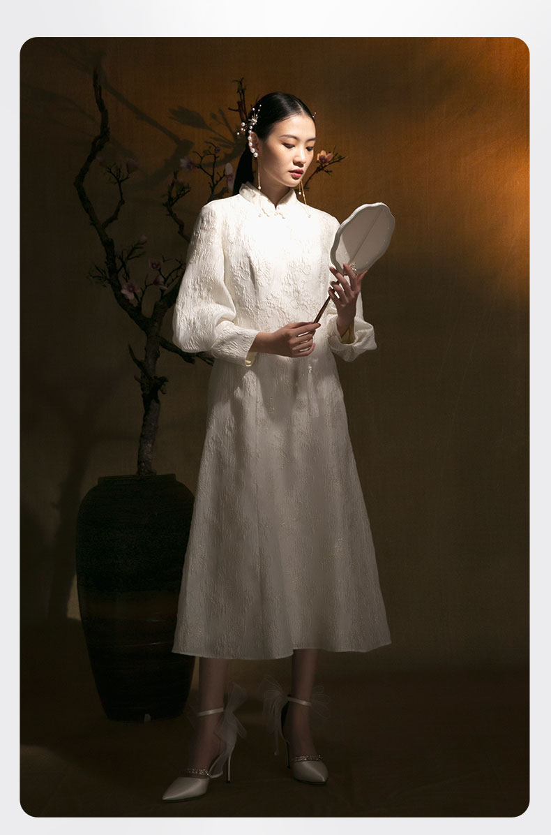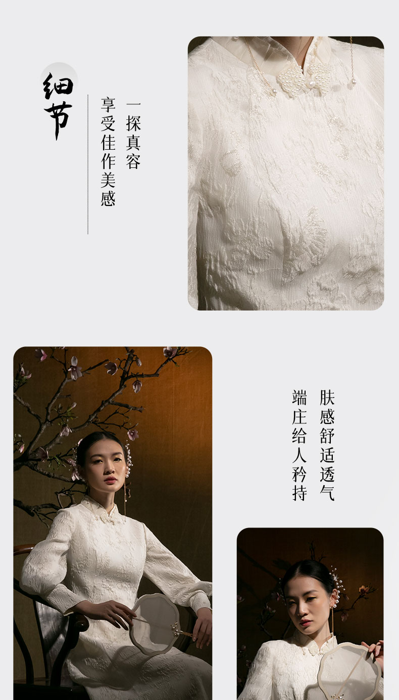 吉祥衣家新中式国风春秋新款白色高端气质修身女装月照花林连衣裙