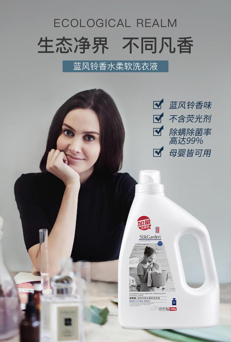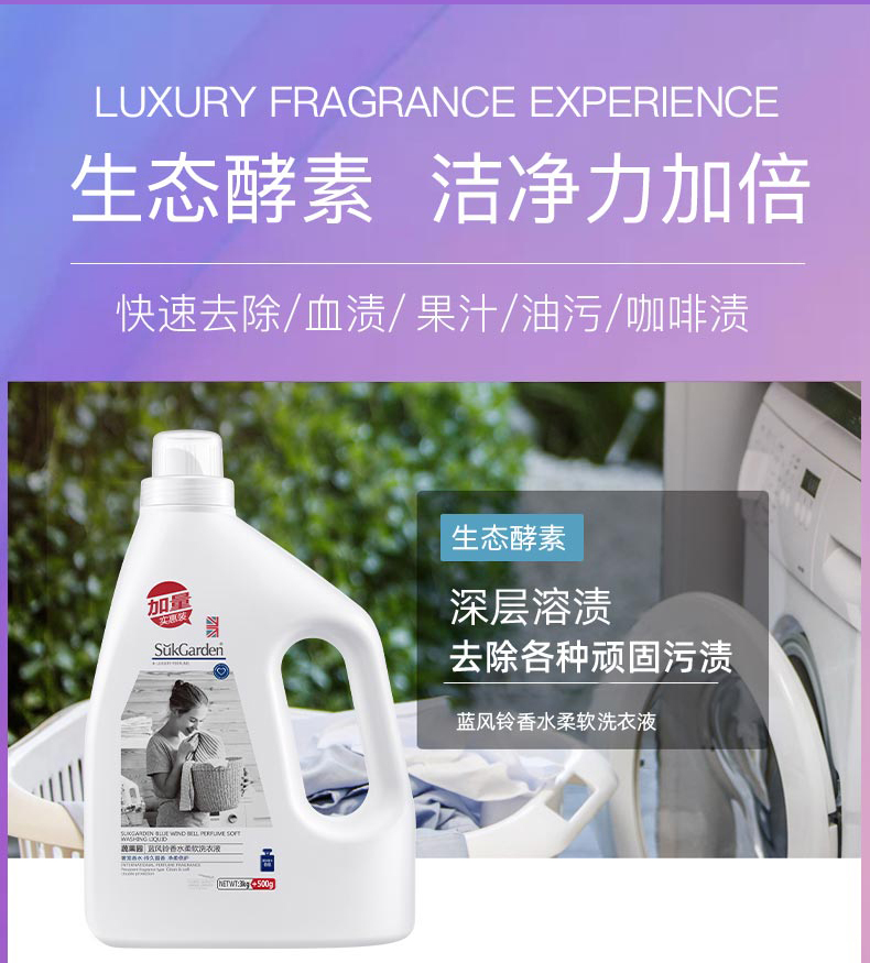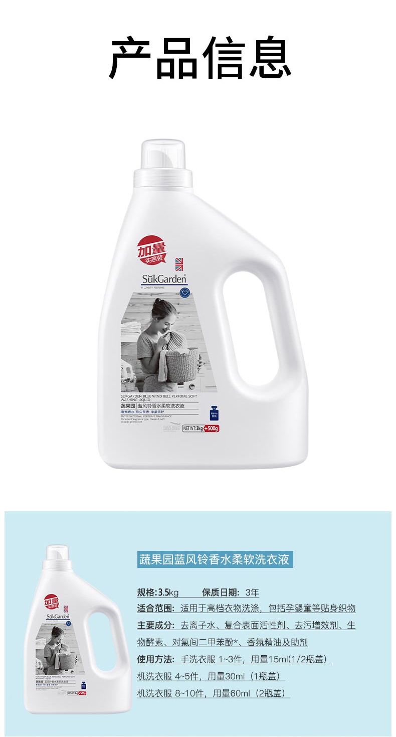蔬果园蓝风铃香水洗衣液3.5kg-1024 送袋包4D天然玫瑰洗衣凝珠1袋