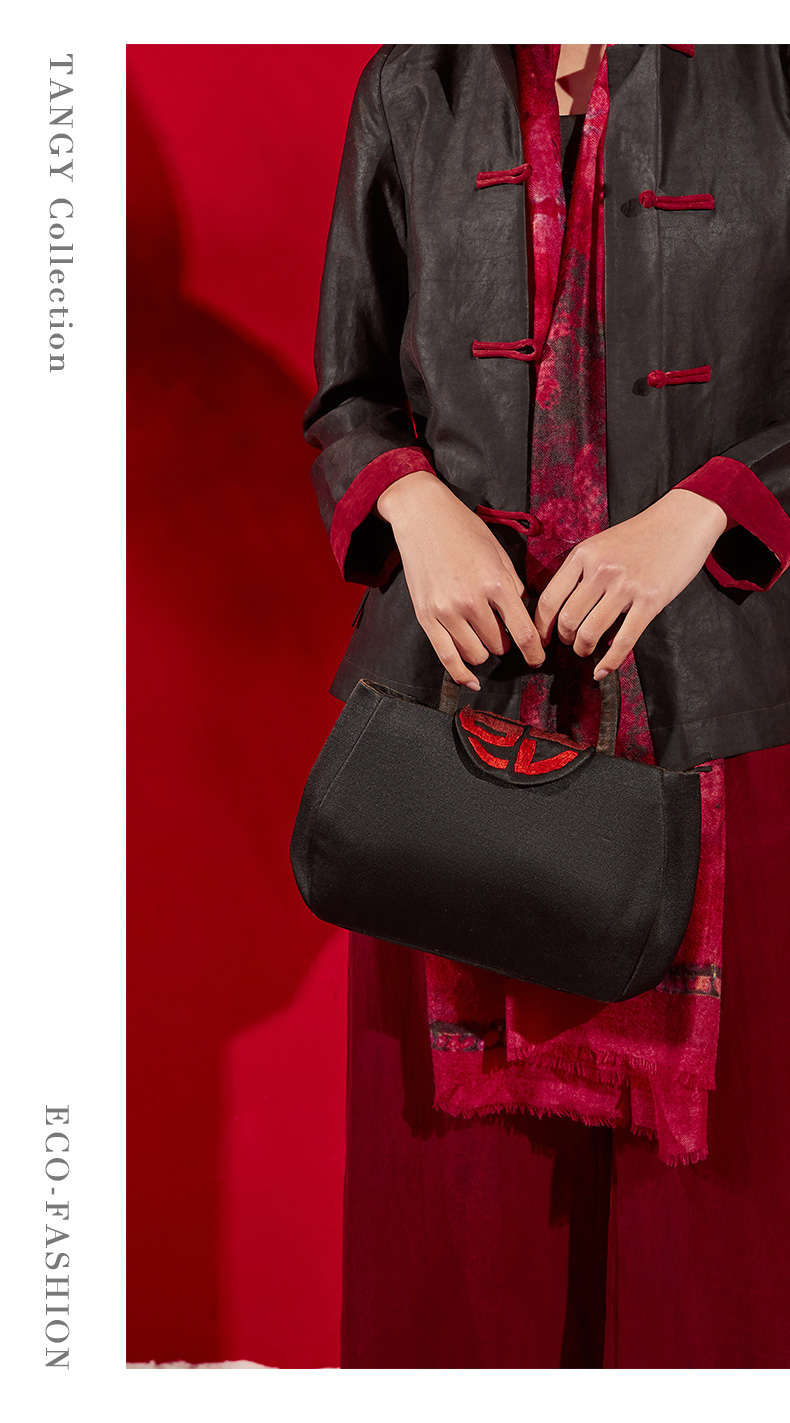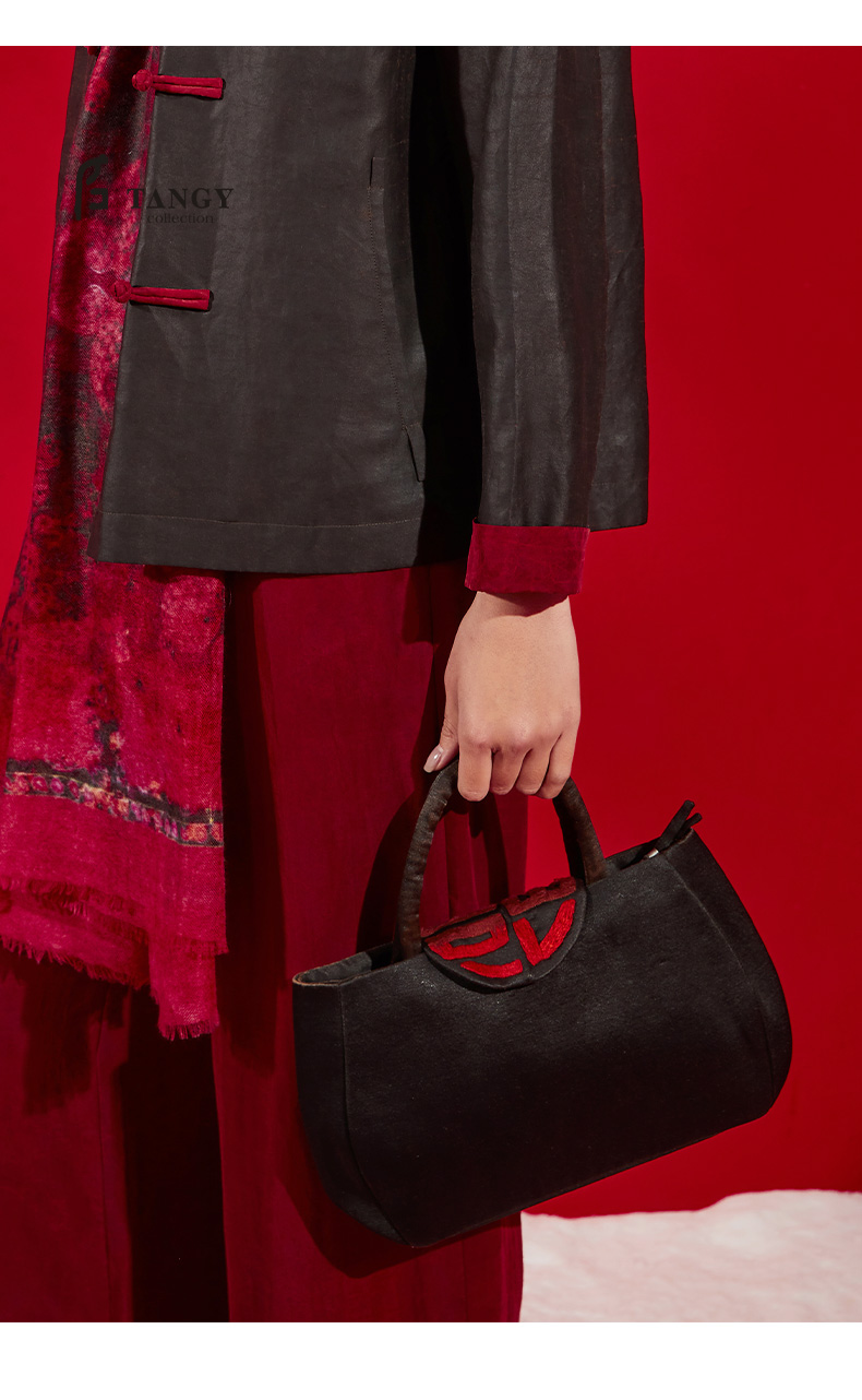 TANGY Collection/天意精品秋冬新品国风原创针织绣花手提包