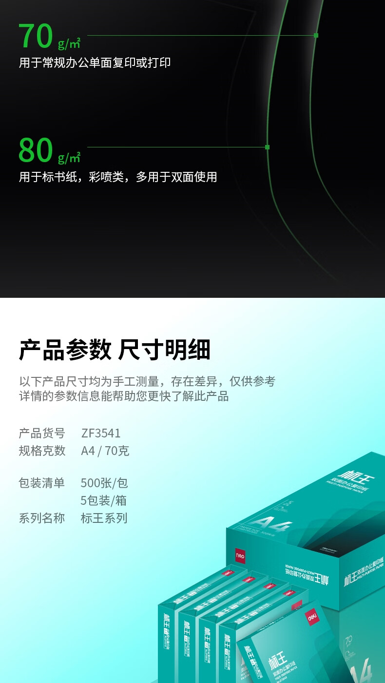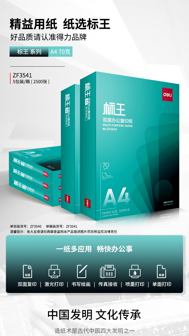 得力ZF3541标王复印纸A4-70g-5包-FN
