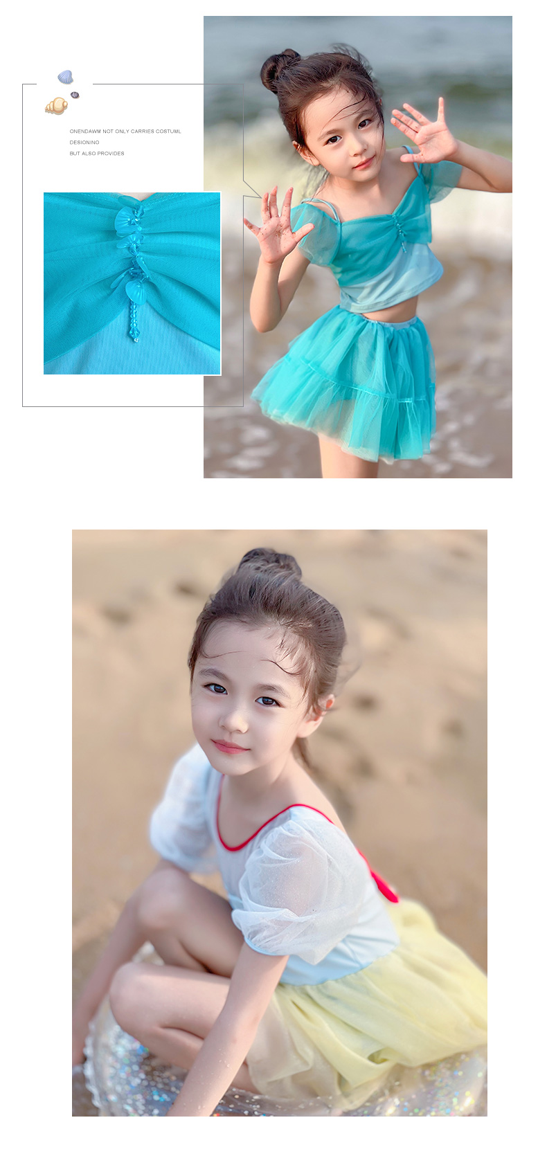 pureshare蓬纱馆 美人鱼女童泳衣女中大童夏儿童游泳衣公主女孩