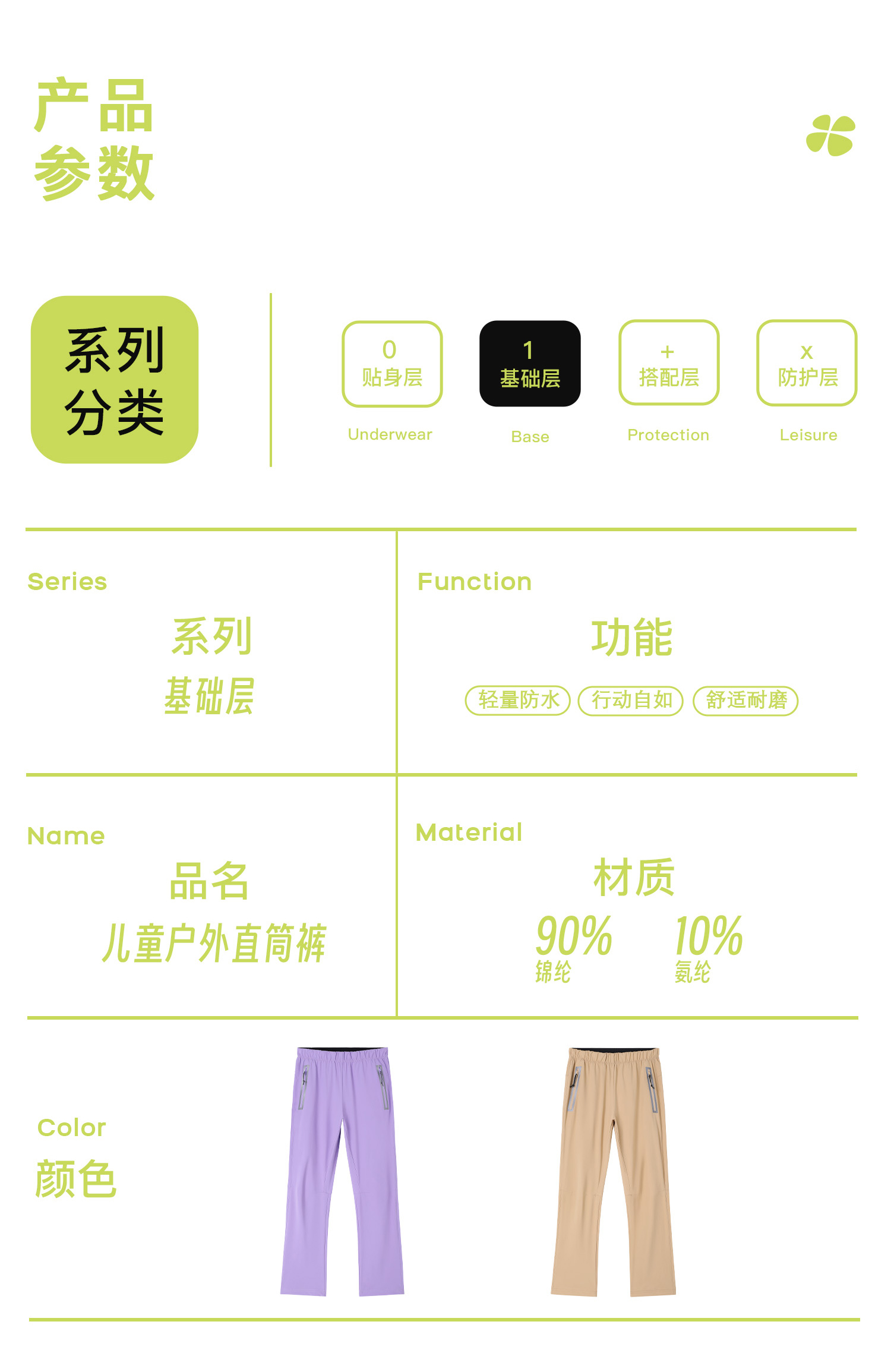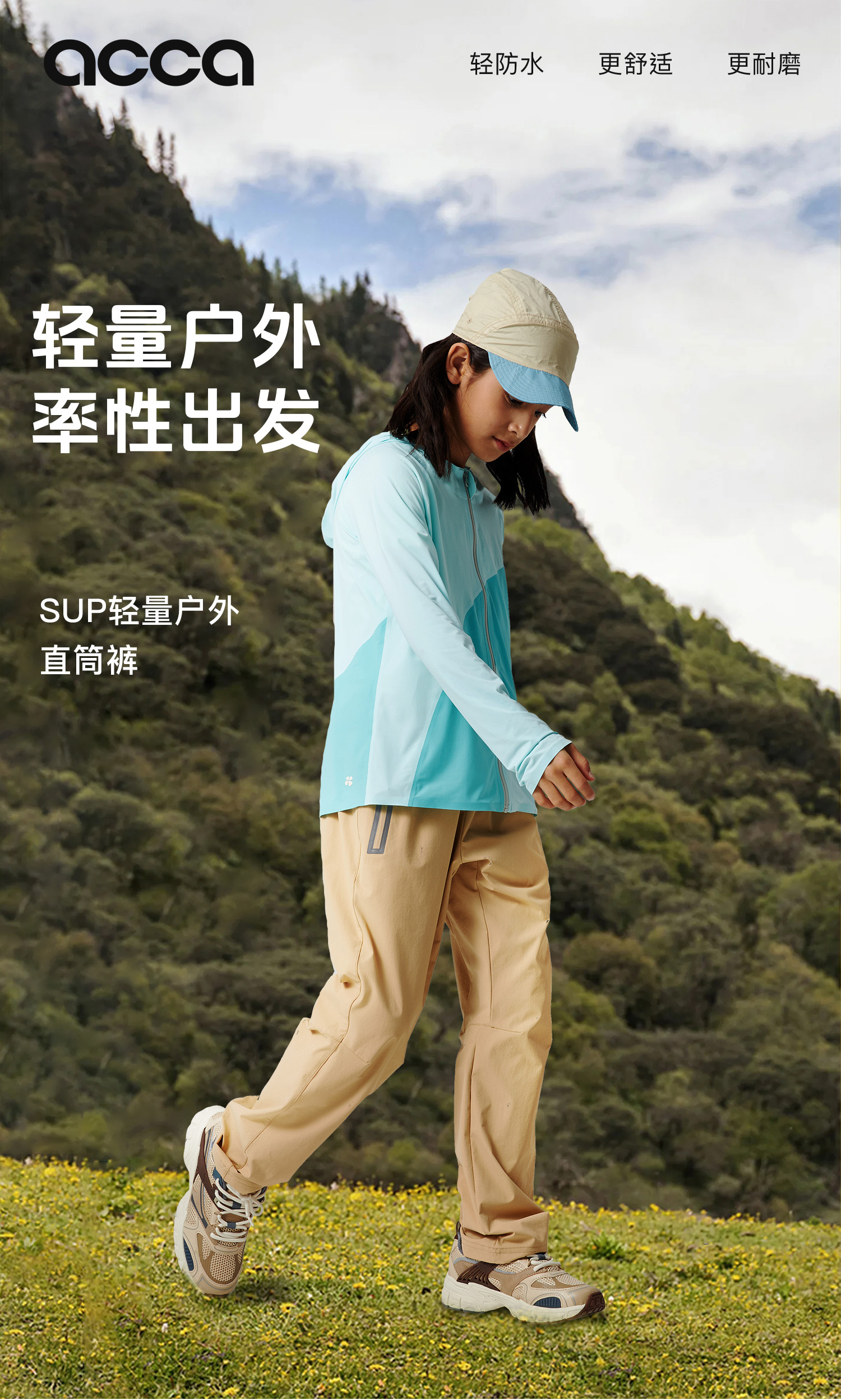 acca 儿童梭织运动裤轻量户外直筒长裤男童女童透气耐磨休闲裤子