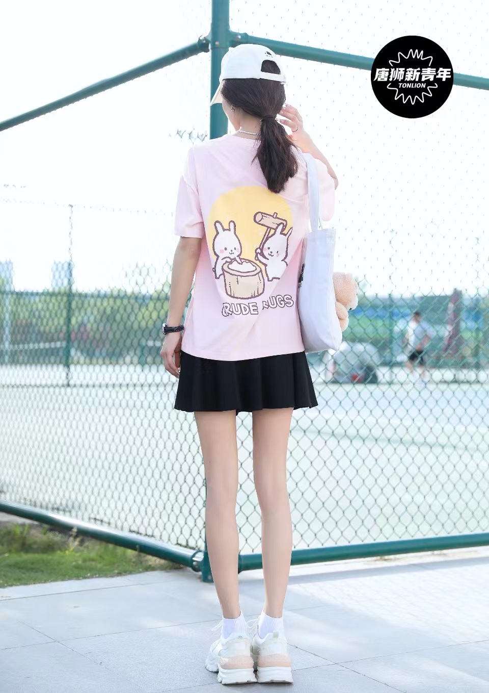 卖点:后背小兔子砸年糕图案趣味十足,冰氧酷面料,亲肤透气,自带凉感,手感柔软,洗涤不变形。宽松版型落肩设计更好的修饰肩型,包容性强胖瘦都适合。