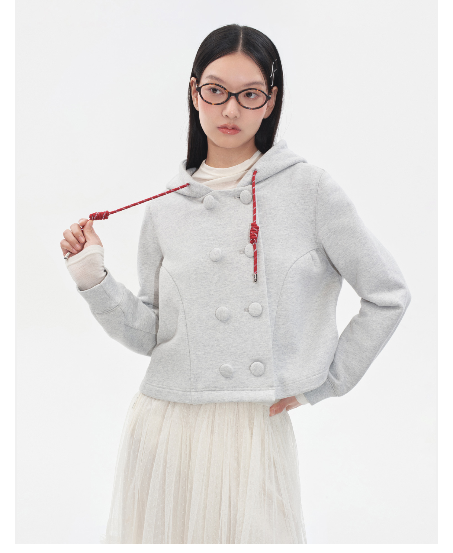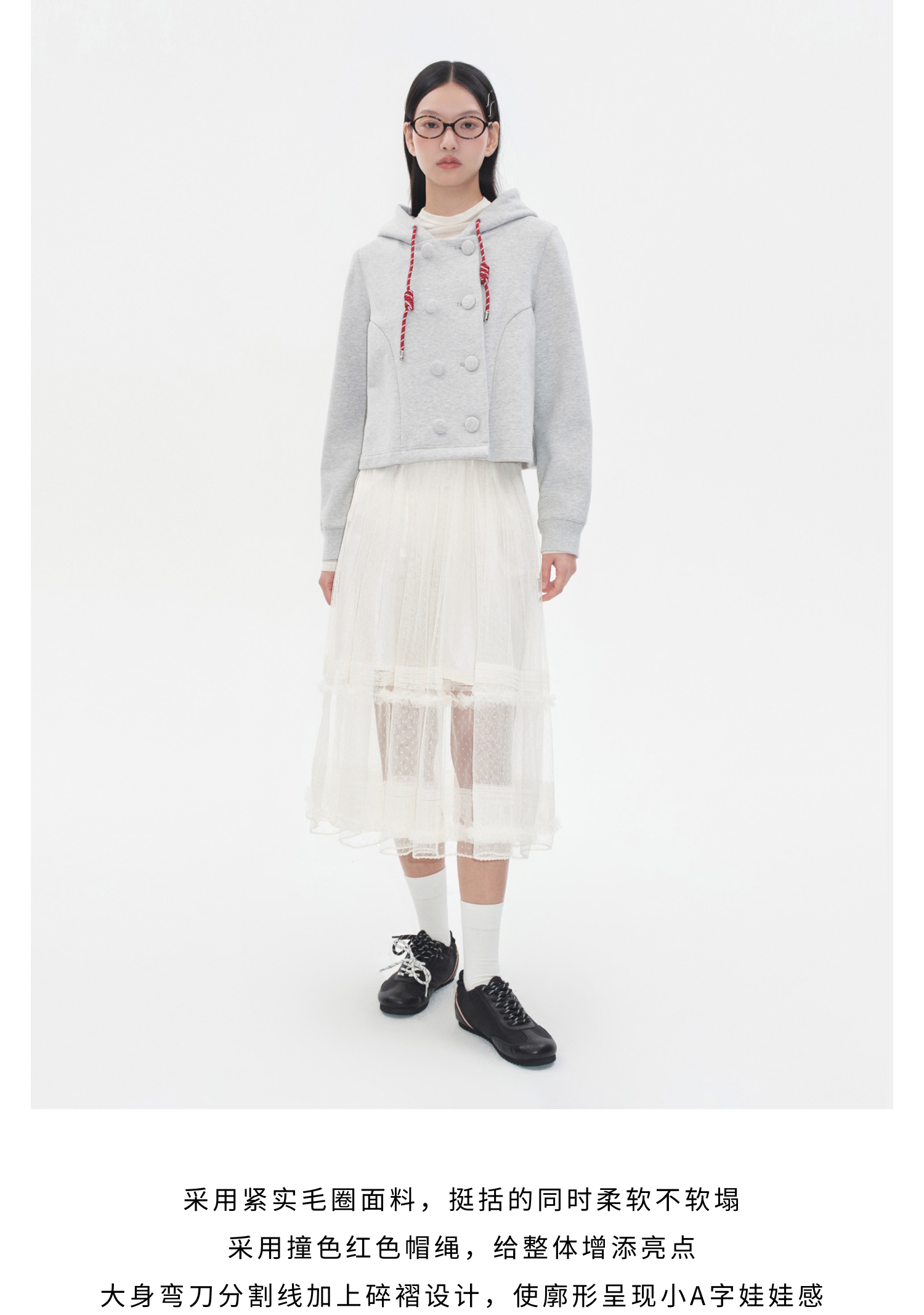 Herlian2025冬季新品 双排扣连帽开衫卫衣女士
