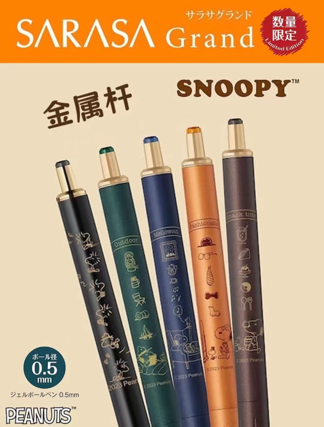 日本ZEBRA斑马SARASA史努比限定复古色JJ15中性笔JJ56金属杆
