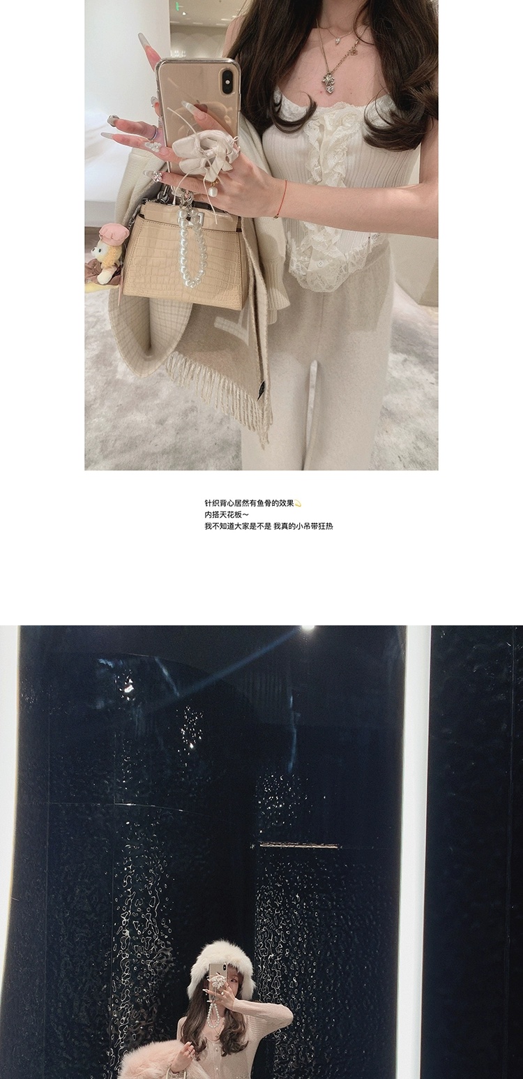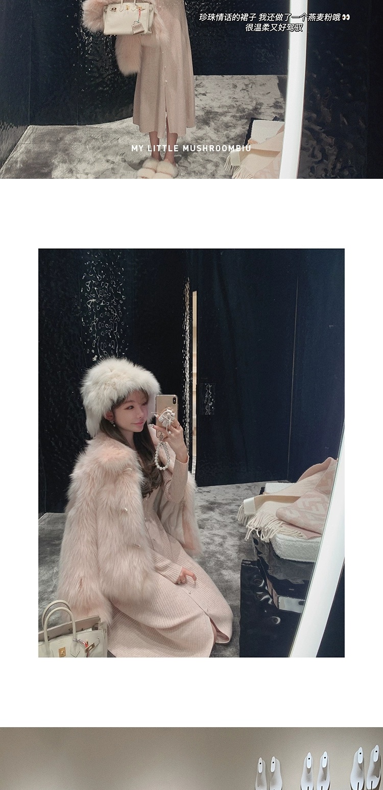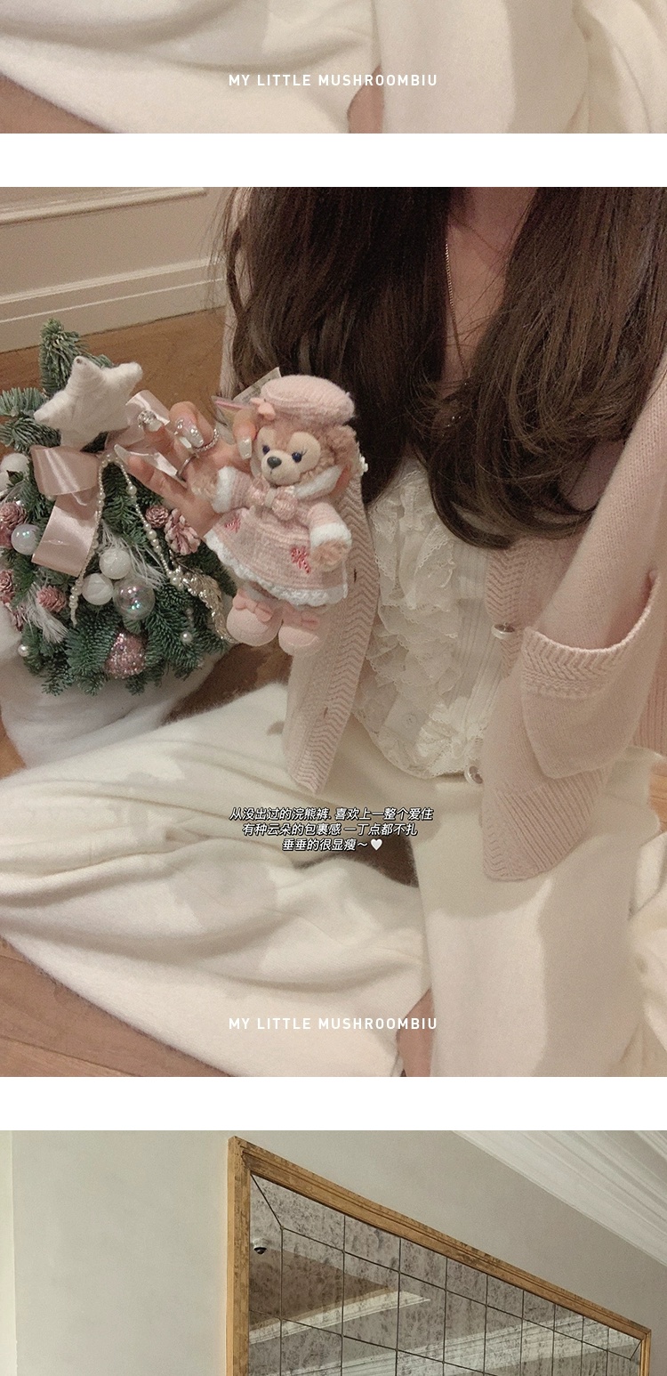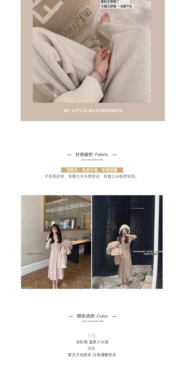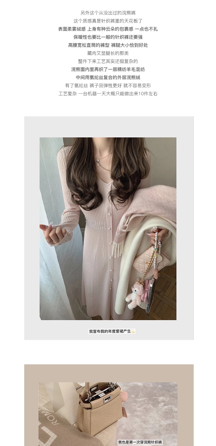 金蘑菇菇 about pearl 珍珠情话 / 100羊毛V领收腰针织内搭连衣裙