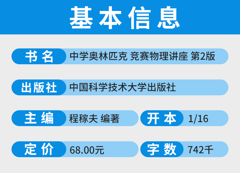 《中学奥林匹克竞赛物理讲座》诞生于2000年,至今将近17年了。本书因叙述朴素严谨、概念精准到位,再加上内容覆盖面广、实用性强的特点,深受广大中学生和中学物理教师欢迎。这次作为第2版重新出版,本书作了很大改进,不但订正了少数印刷错误,改用了现行的数学符号,而且公式排版更规范,图片更清晰。