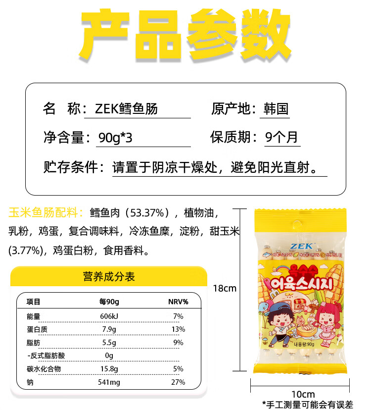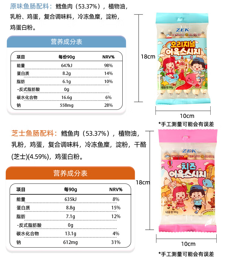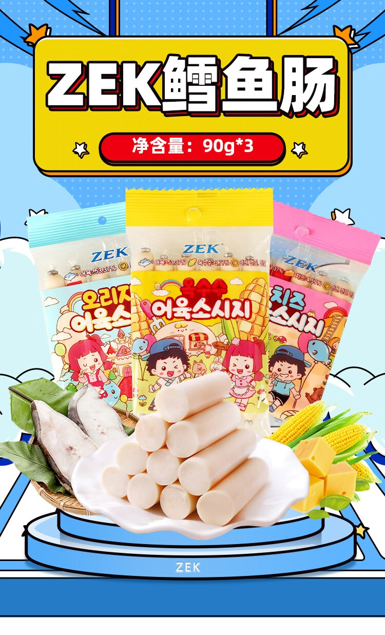 韩国zek鳕鱼肠原味/玉米味/芝士味90g 深海鳕鱼营养健康 152242/152243/152244