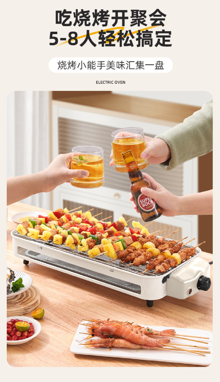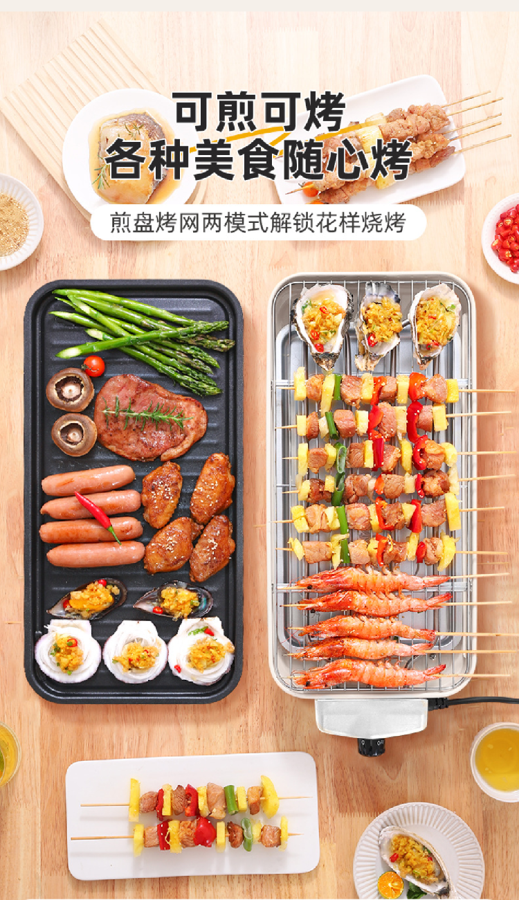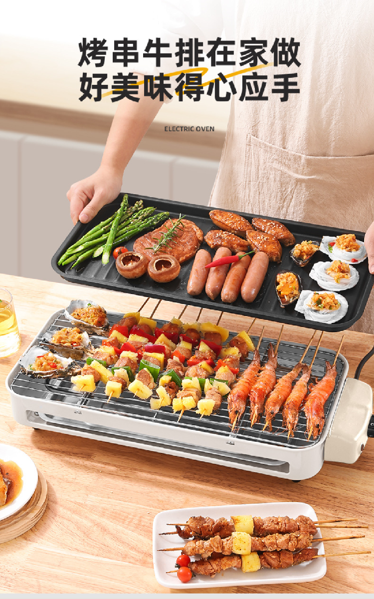 电烧烤炉子无烟家用烧烤架电烤盘户外烤肉机烤串多功能室内电烤锅