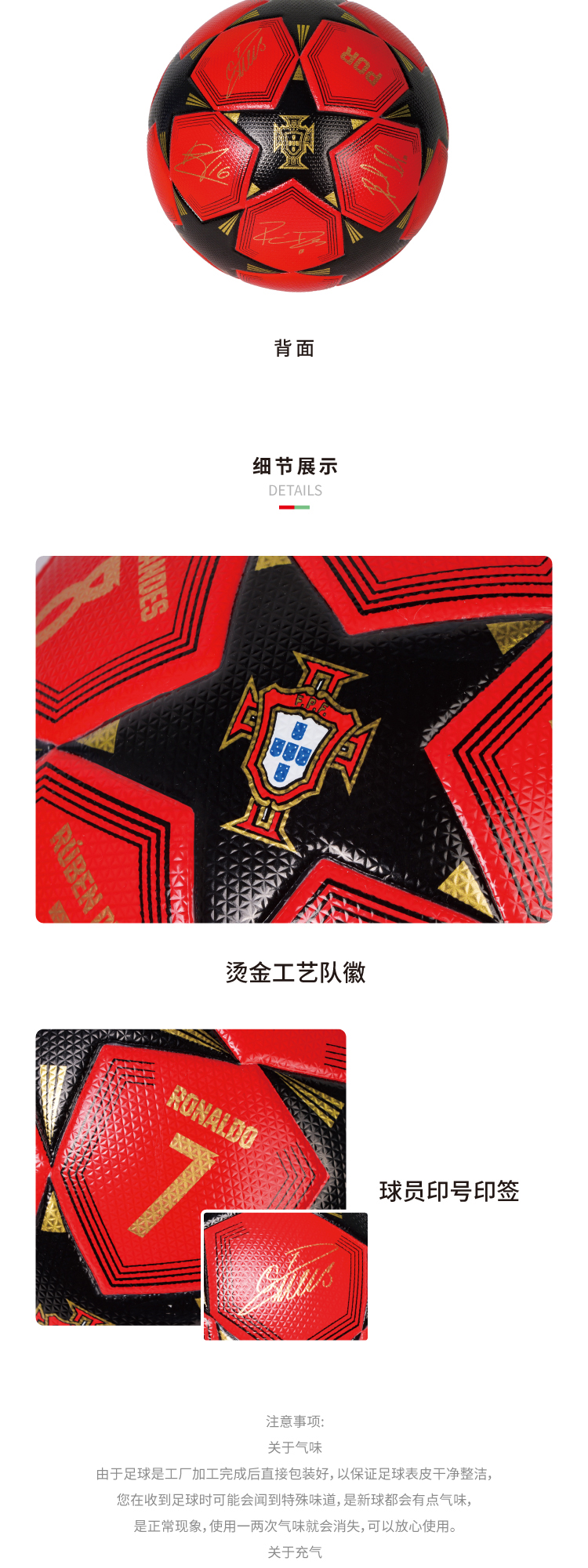 【官方正版】葡萄牙国家队 | 黑红印号足球5号球训练足球球迷周边