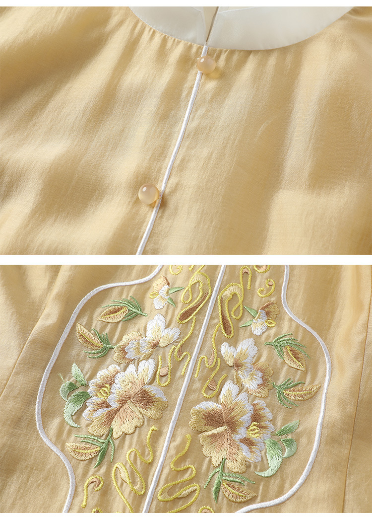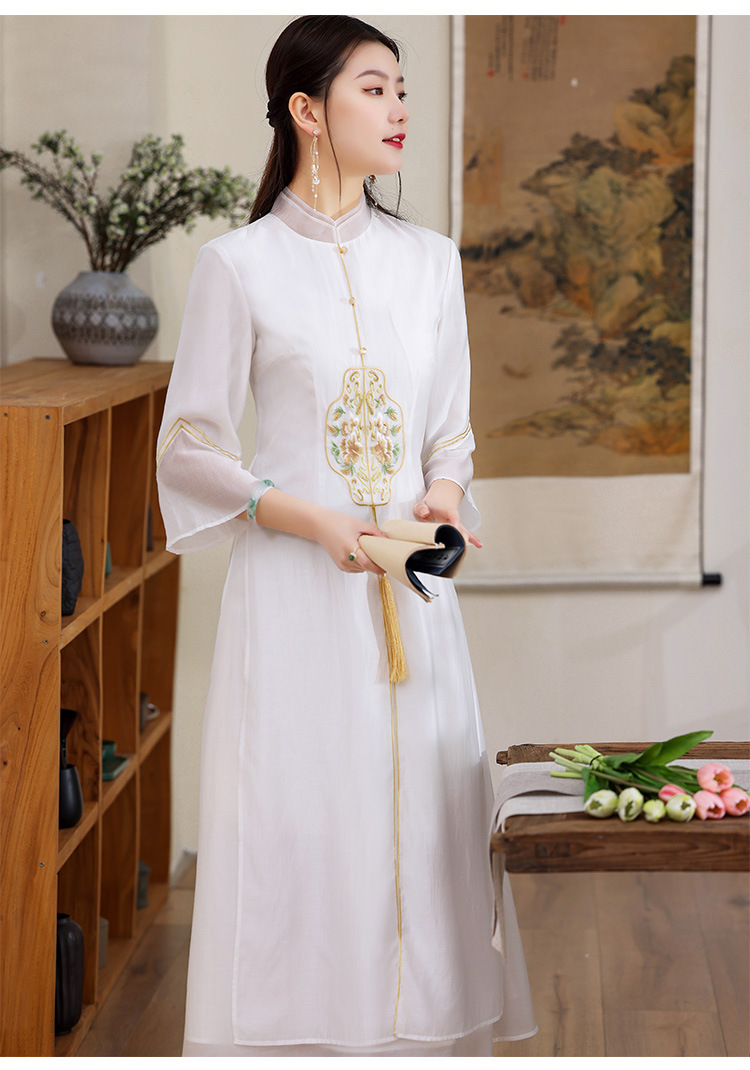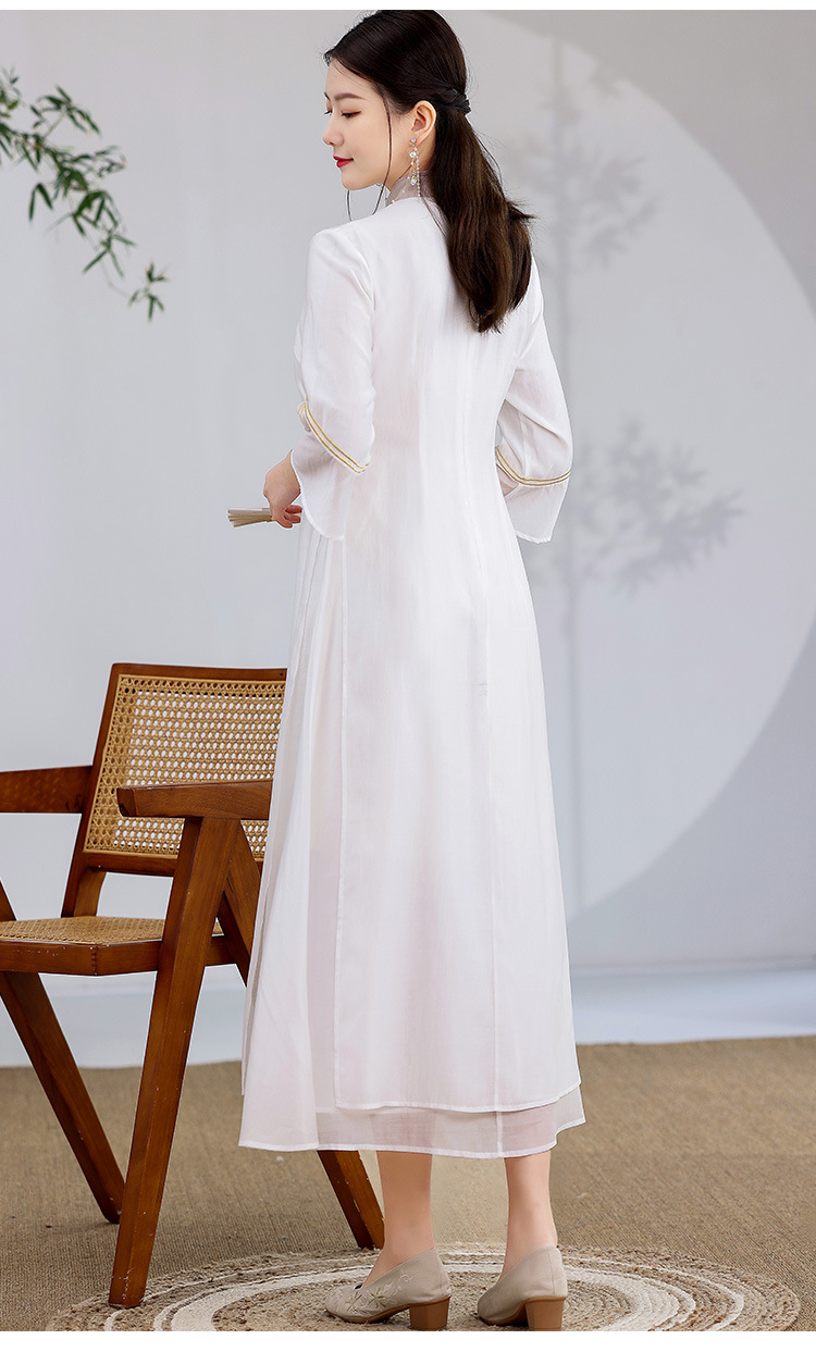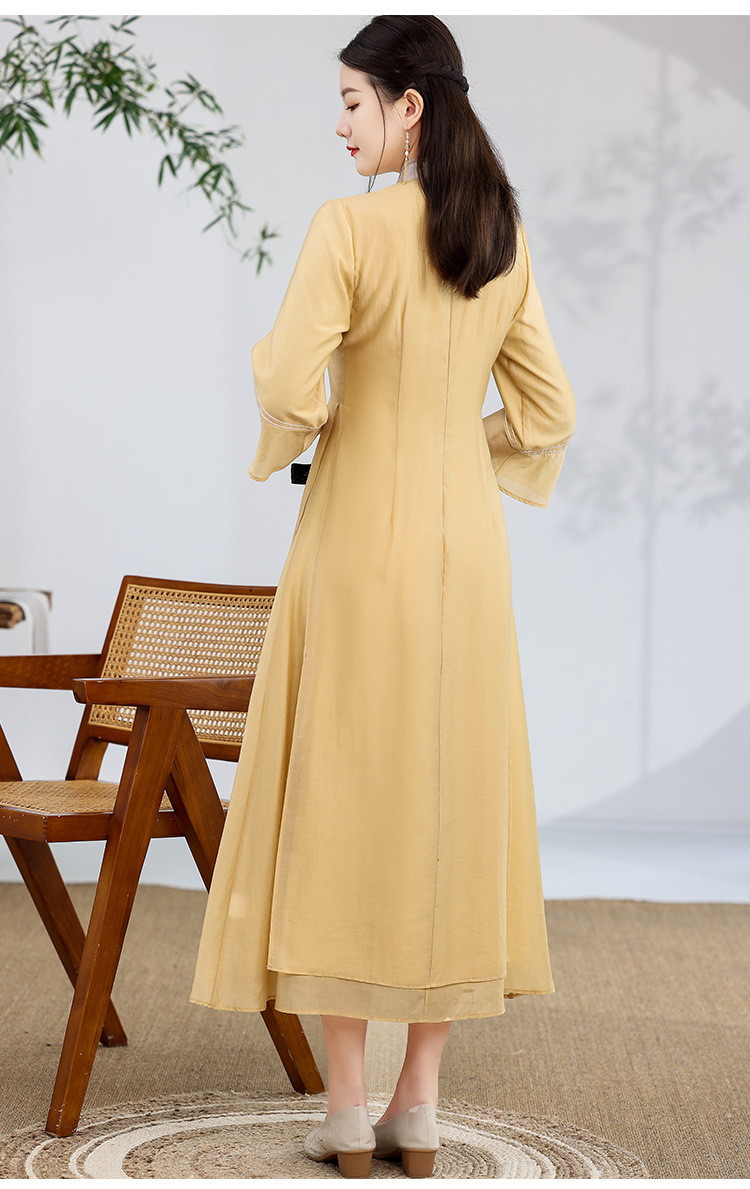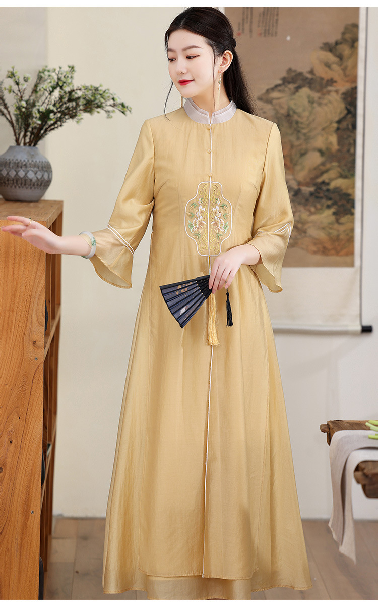休闲文艺,天丝刺绣禅意茶服中长连衣裙KDS-2255
