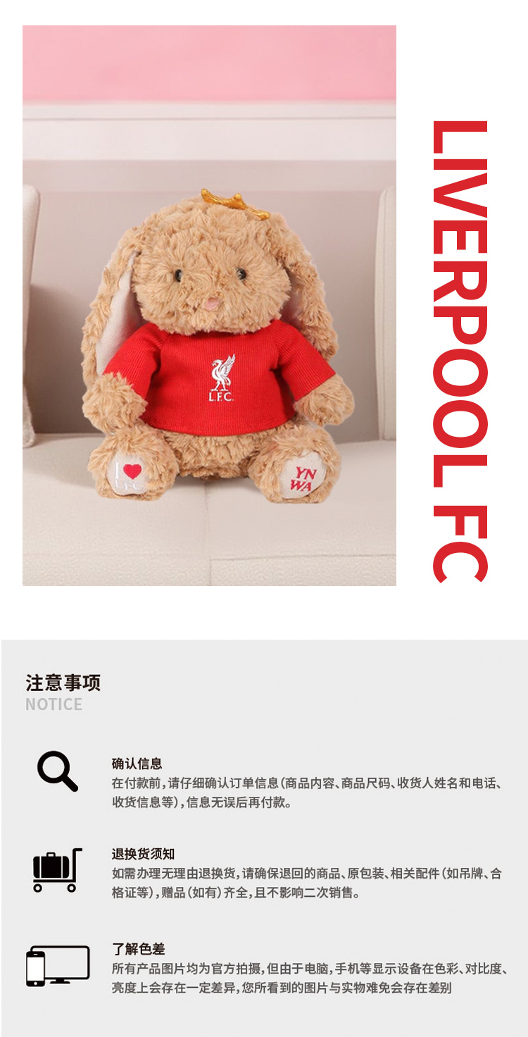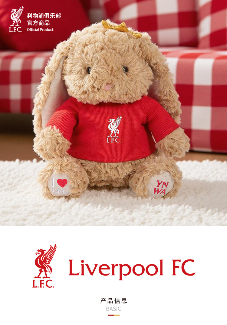 【官方正版】利物浦俱乐部 | 软萌毛绒兔子玩偶球迷周边礼物