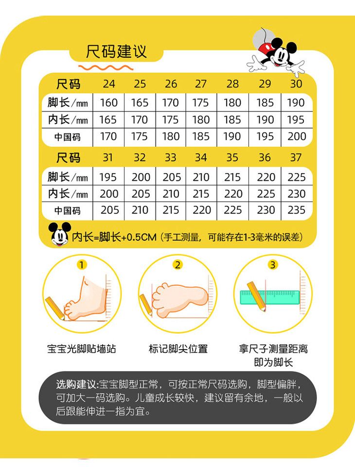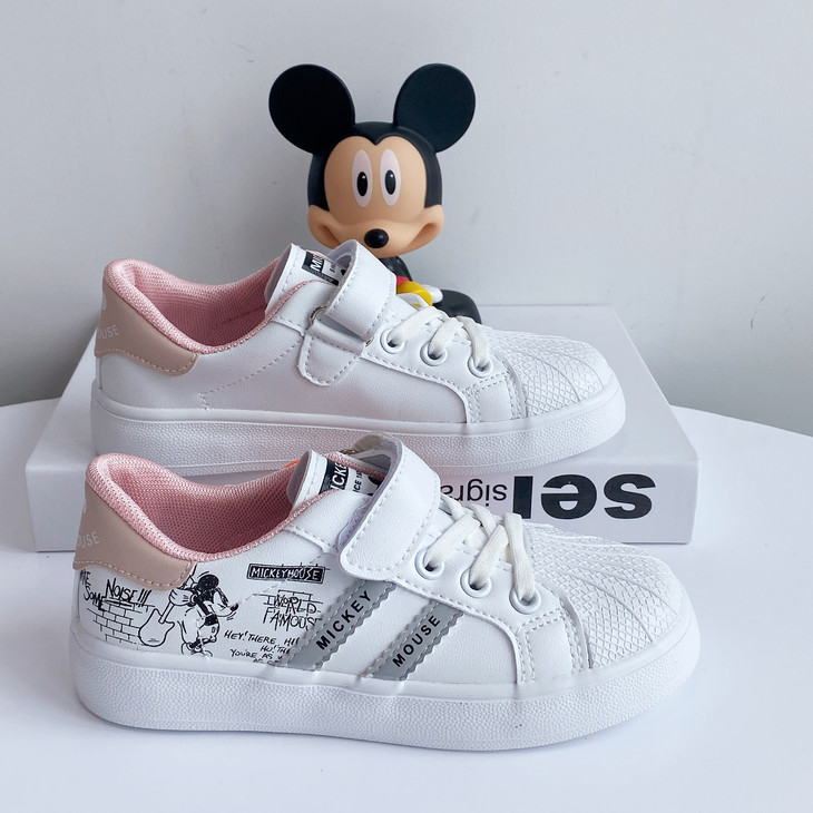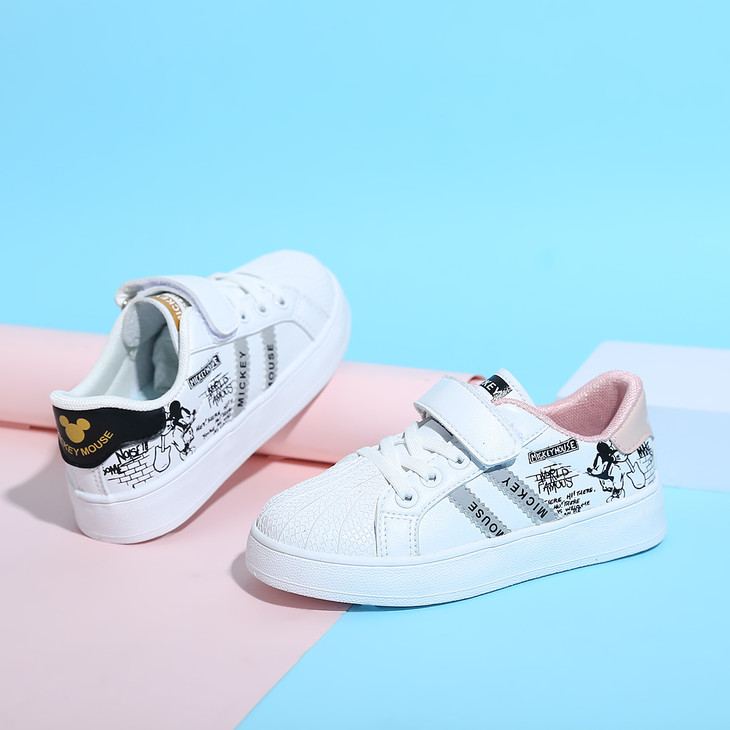 货号:M2218676 颜色:白黑、白粉 尺码:24-37 材质:鞋面 合成革;鞋底 橡胶 鞋款时尚,鞋面卡通印花好看有个性,白色为主色很百搭,日常搭配裙子裤子都很合适 加固圆圆鞋头,防撞耐踢保护宝宝脚趾,宝妈也可以放心宝宝在外玩耍 后跟杯加固设计,稳健宝宝娇嫩根骨,让脚丫健康发育 鞋子又软又轻,穿在脚上没有负担,久穿不会累脚超级舒适~~