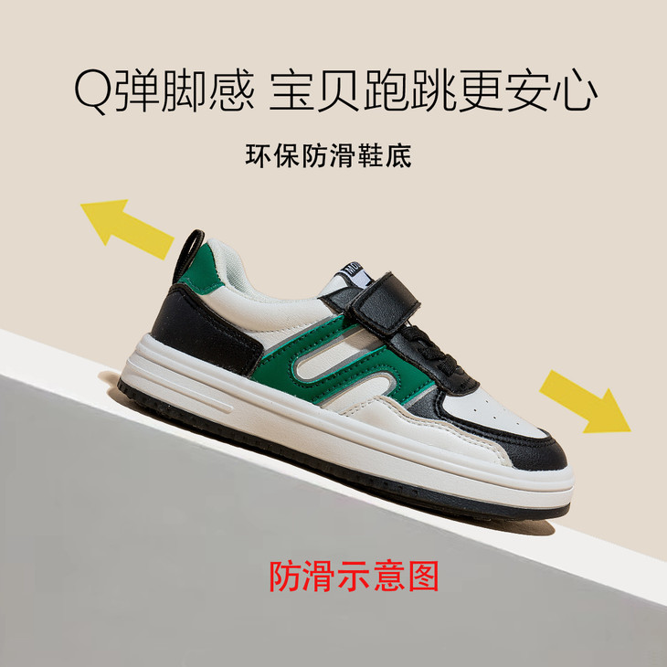 货号:M2238759 颜色:米卡其、米兰 尺码:24-37 材质:鞋面 超纤;鞋底 橡胶 简约而不简单的设计,既有运动风的活力,也不乏板鞋的休闲感。 颜色选择多样,从低调的黑色调到活泼的粉色系,每一款都让人爱不释手~~ 搭配秋日里的任何装扮都毫无违和感! 鞋头有防撞橡胶盾,可以在宝宝玩耍时保护宝宝娇嫩脚趾~