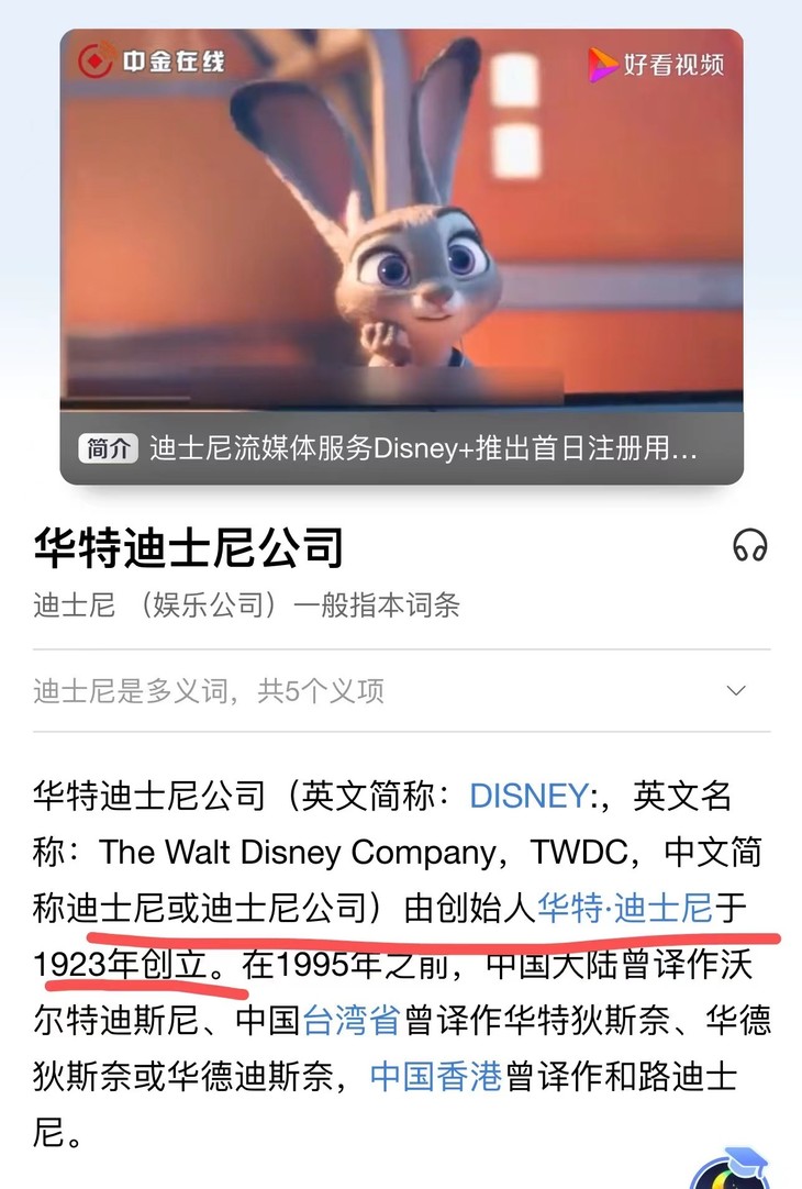 迪士尼全称为The Walt Disney Company, 取名自其创始人华特迪士尼, 是总部设在美国伯班克的大型跨国公司, 诞生于1923年的迪士尼, 至今已有上百年的历史了! 当今的迪士尼已经远远不止于从事动画电影这一个行业, 包含迪士尼手表、饰品、鞋服、家居用品、电子产品等多个产业 迪士尼所涉及的各大产业都受到了广大消费者的一至好评, 取得了丰硕的商业价值。 迪士尼在2008年《商业周刊》的世界100强品牌 (按照品牌价值) 排名为第9位。