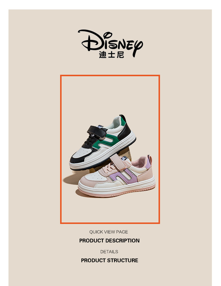迪士尼童鞋秋季魔术贴潮流百搭低帮板鞋