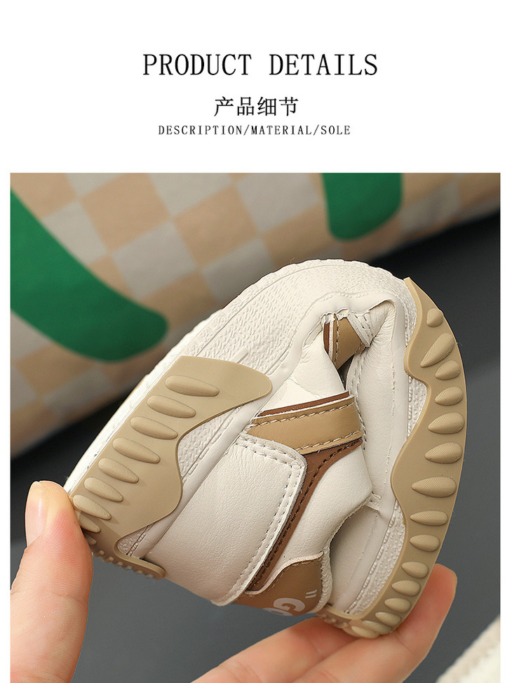 货号:M2238758 颜色:米灰、米白卡其 尺码:24-37 材质:鞋面 超纤;鞋底 橡胶 很经典百搭的设计,设计有质感,宝宝穿上巨好看 便捷魔术贴宝宝穿脱超级方便,不用为系鞋带而烦恼 内里亲肤柔软,穿着不硌脚又吸汗散热超级舒适