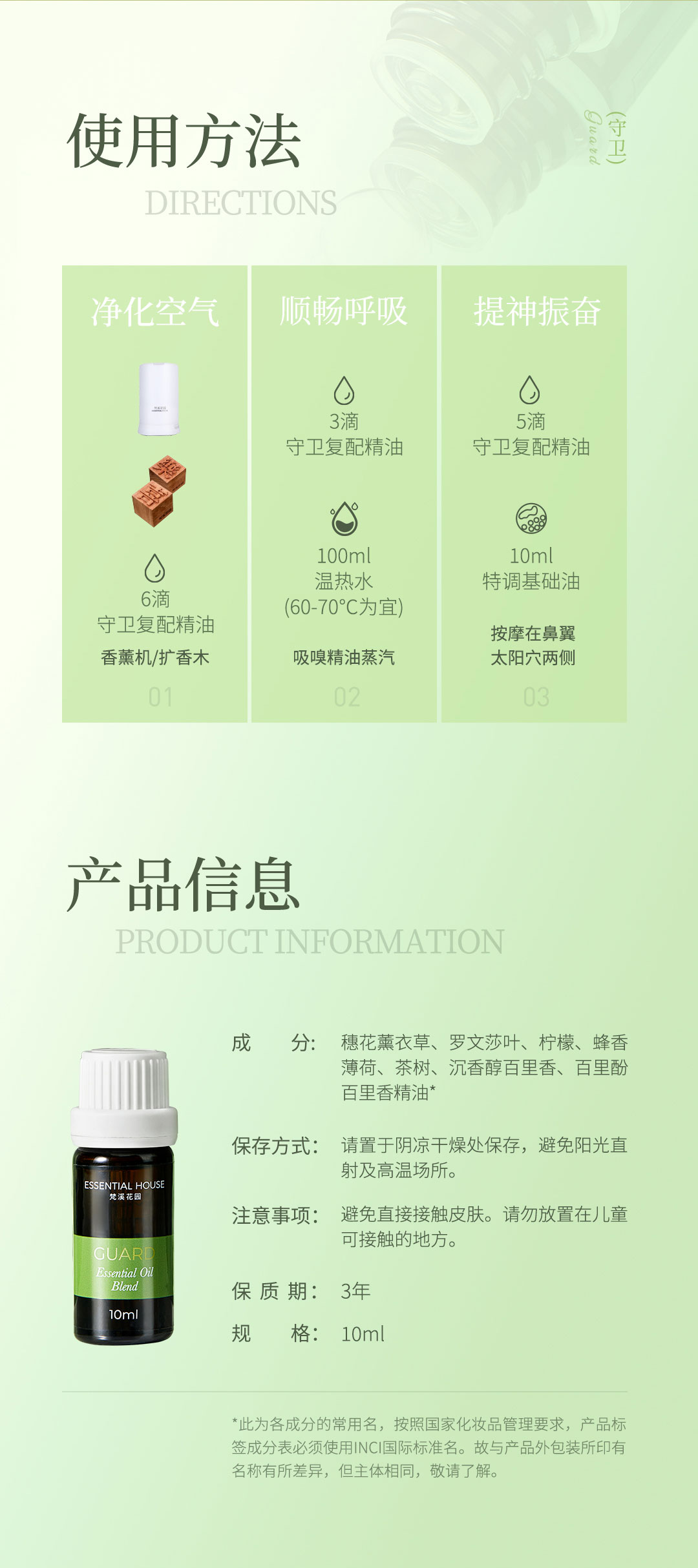 守卫复配精油香薰精油提升呼吸道免疫力