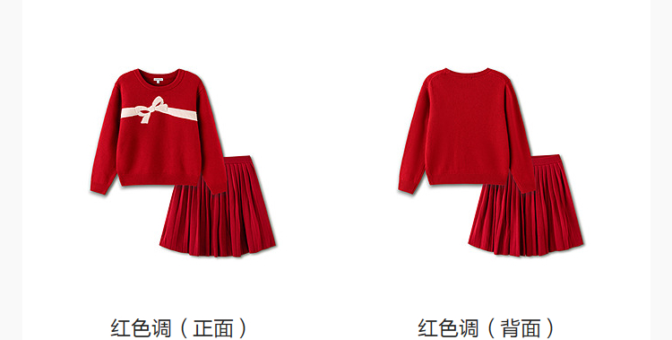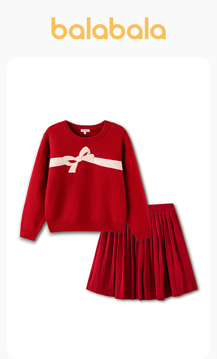巴拉巴拉童装儿童套装两件套中大童女童春装羊毛衫甜美百褶裙新年